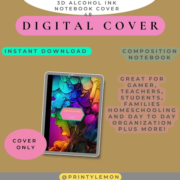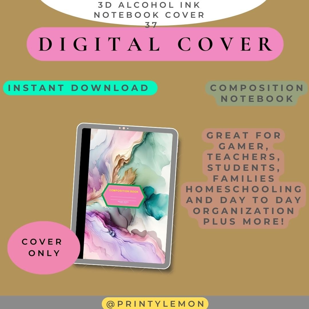 37 Alcohol Ink 3D | Digital Cover Premium | Notebook Cover | GoodNotes | Composition Notebook | Printable