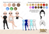 four different skin tones, three eye colours and 15 hair colours in one hairstyle)