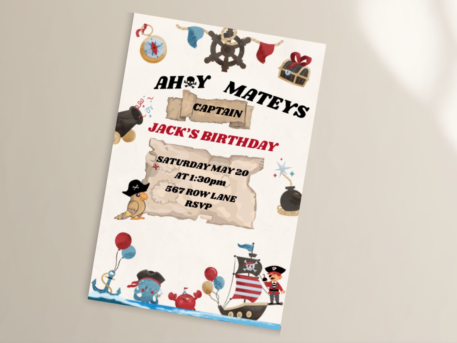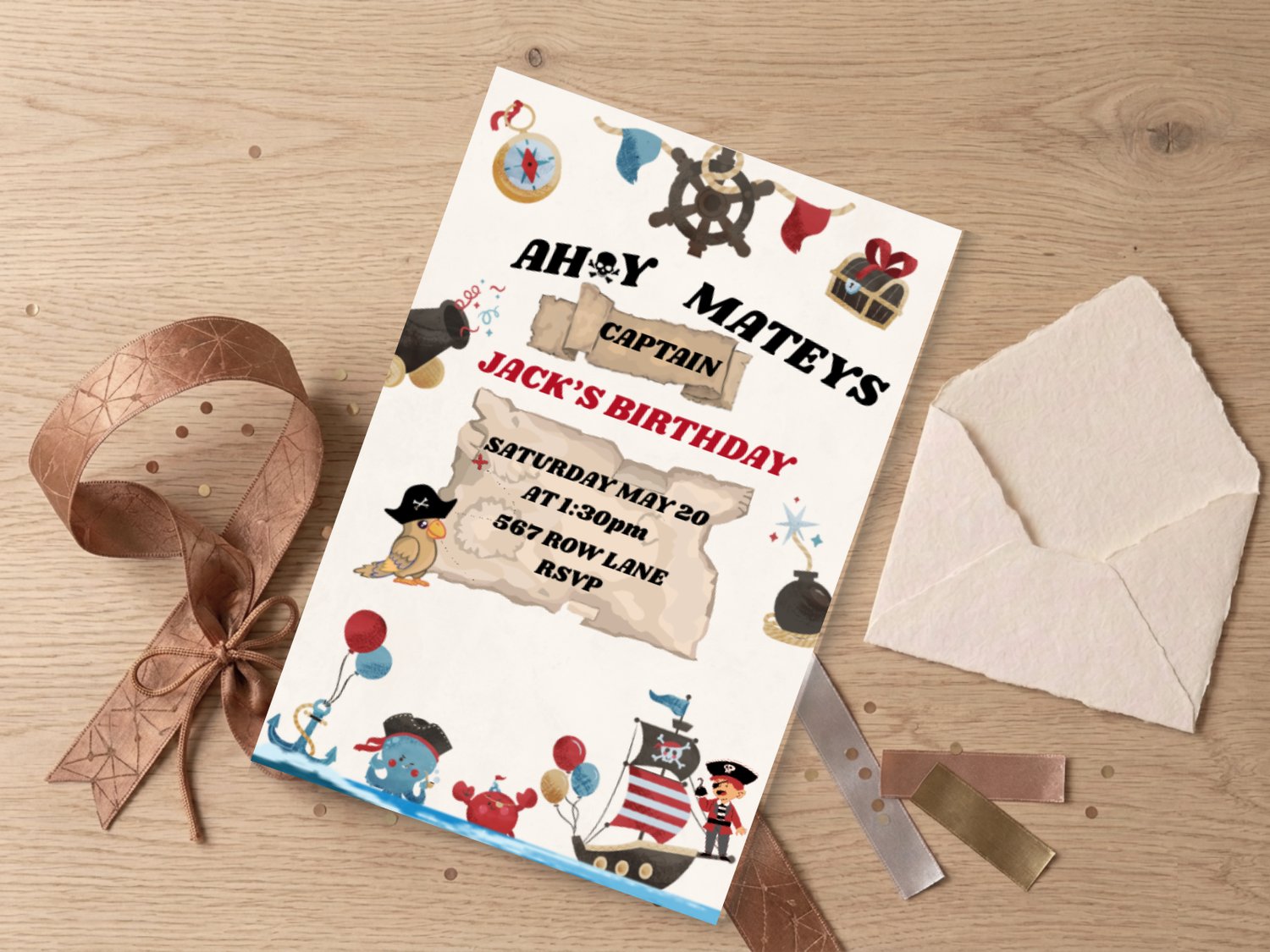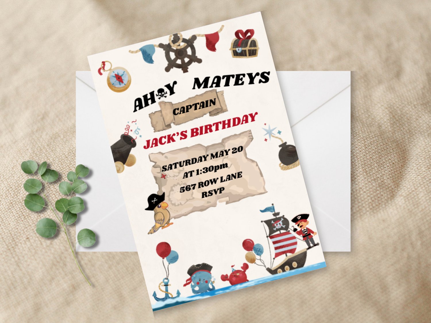 Ahoy Mateys Pirate Birthday Invitation β Editable Template