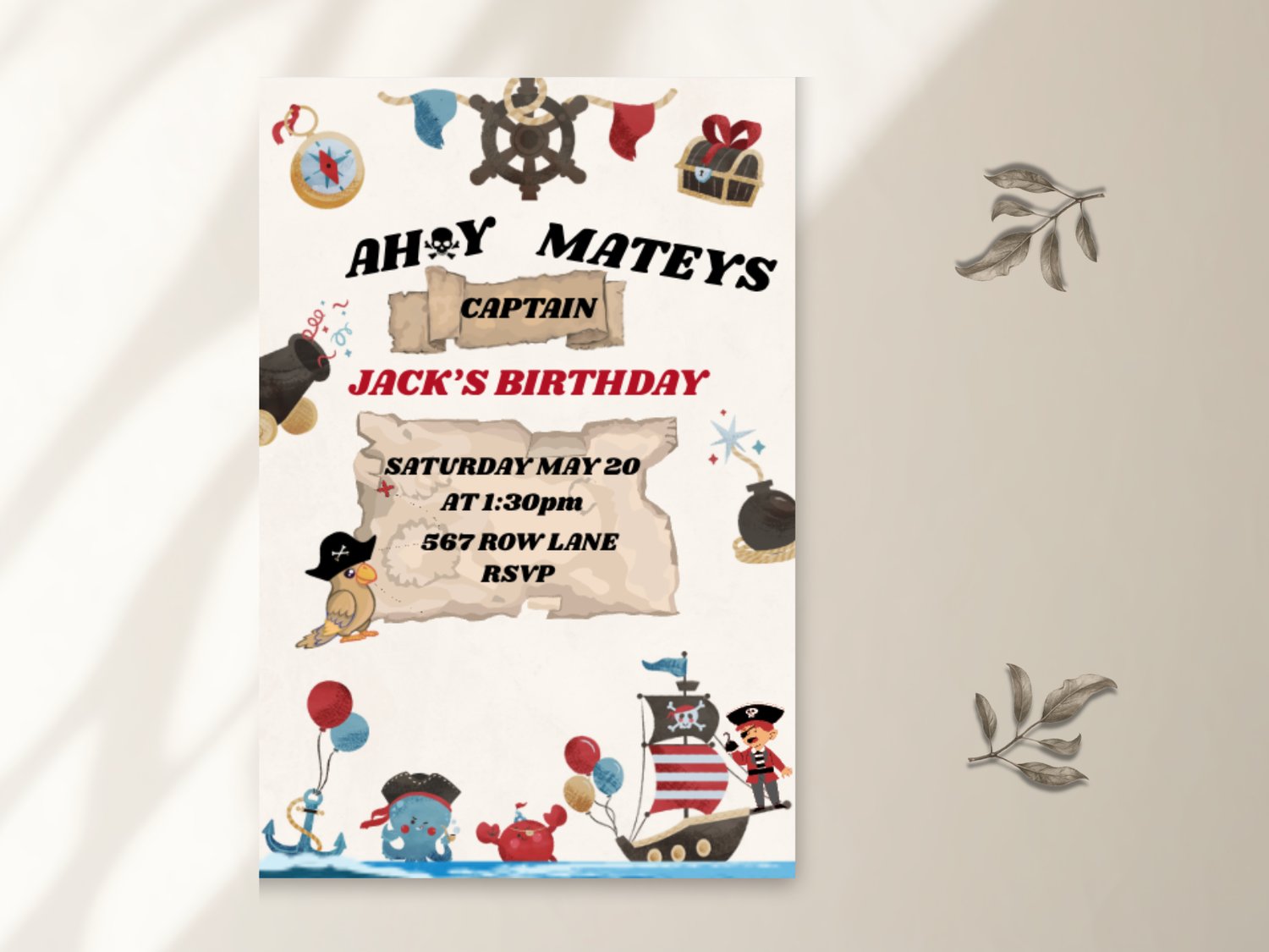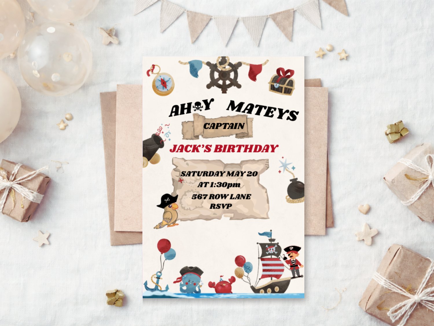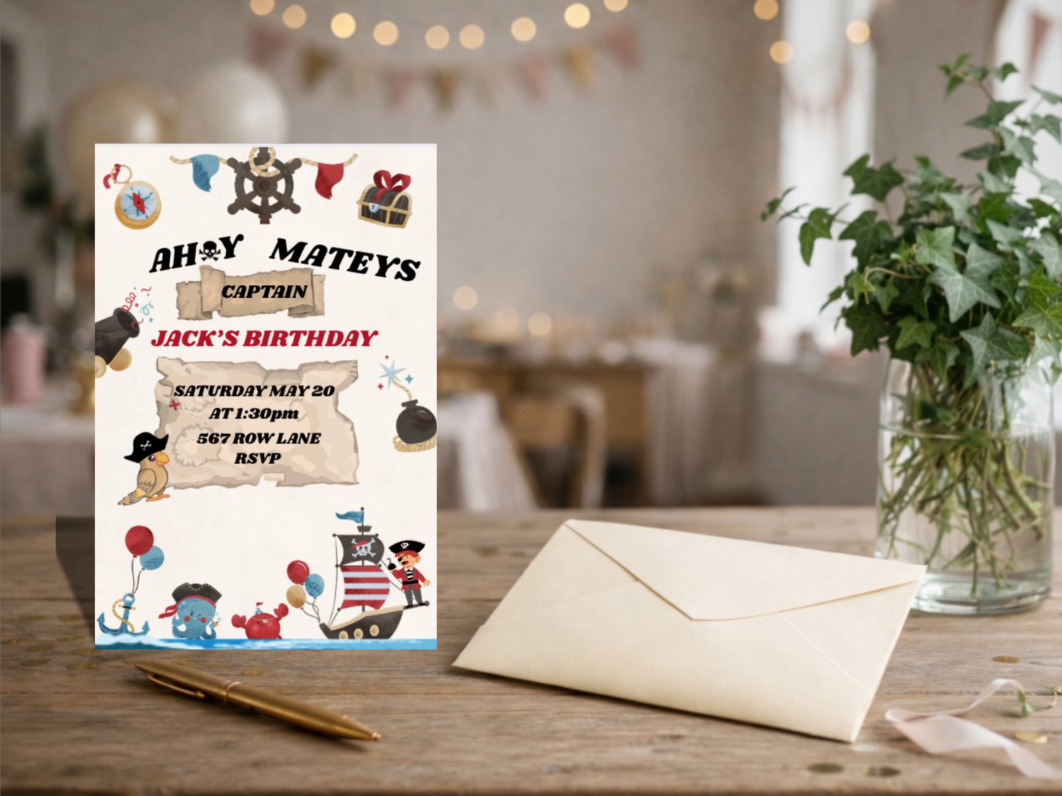 Ahoy Mateys Pirate Birthday Invitation β Editable Template
