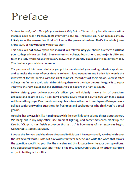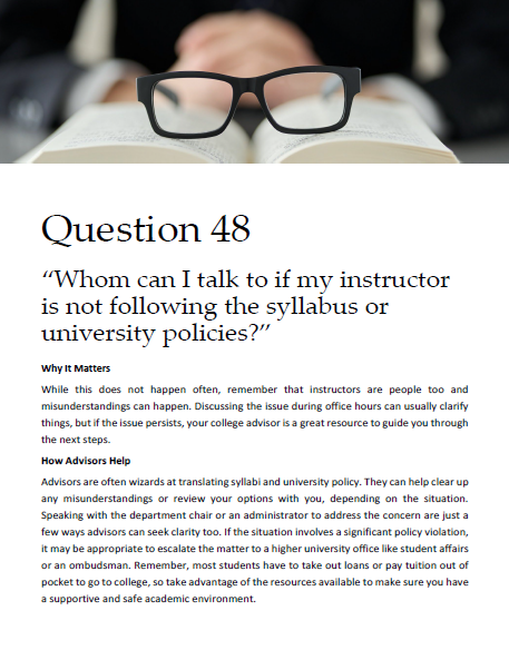 This e-book packs a punch with 50 questions college students should ask their college advisor.