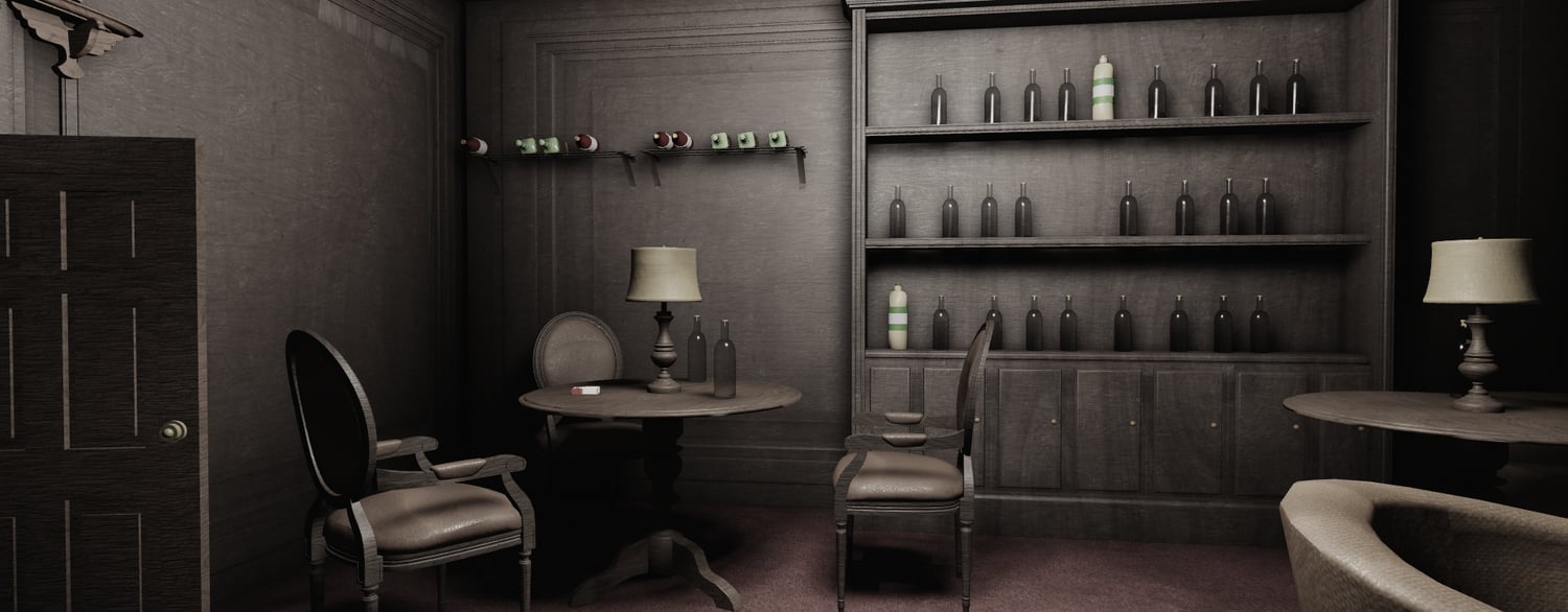 - Fully detailed lounge interior with warm, vintage ambience