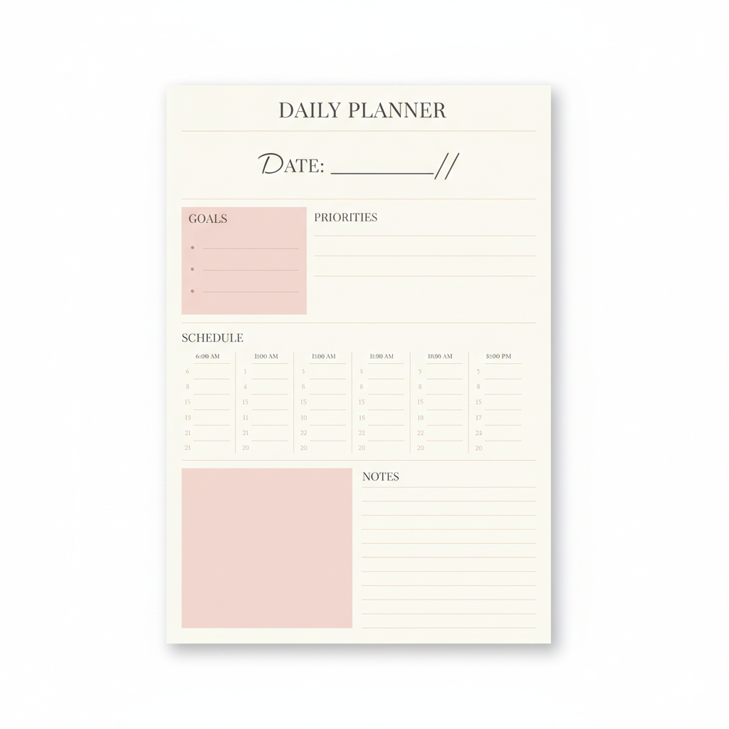 This Aesthetic Daily Planner is designed to bring structure, calm, and motivation to your daily routine. Whether you’re a student, business owner, or creative dreamer — this planner helps you plan your day beautifully and productively.