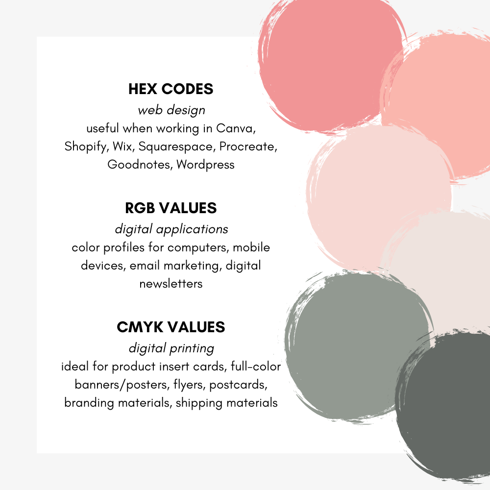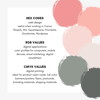 + Detailed Hex Codes, RGB, and CMYK values for each color