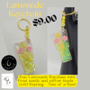 - with yellow chunky glitter and fruits inside of a cup shaped resin charm