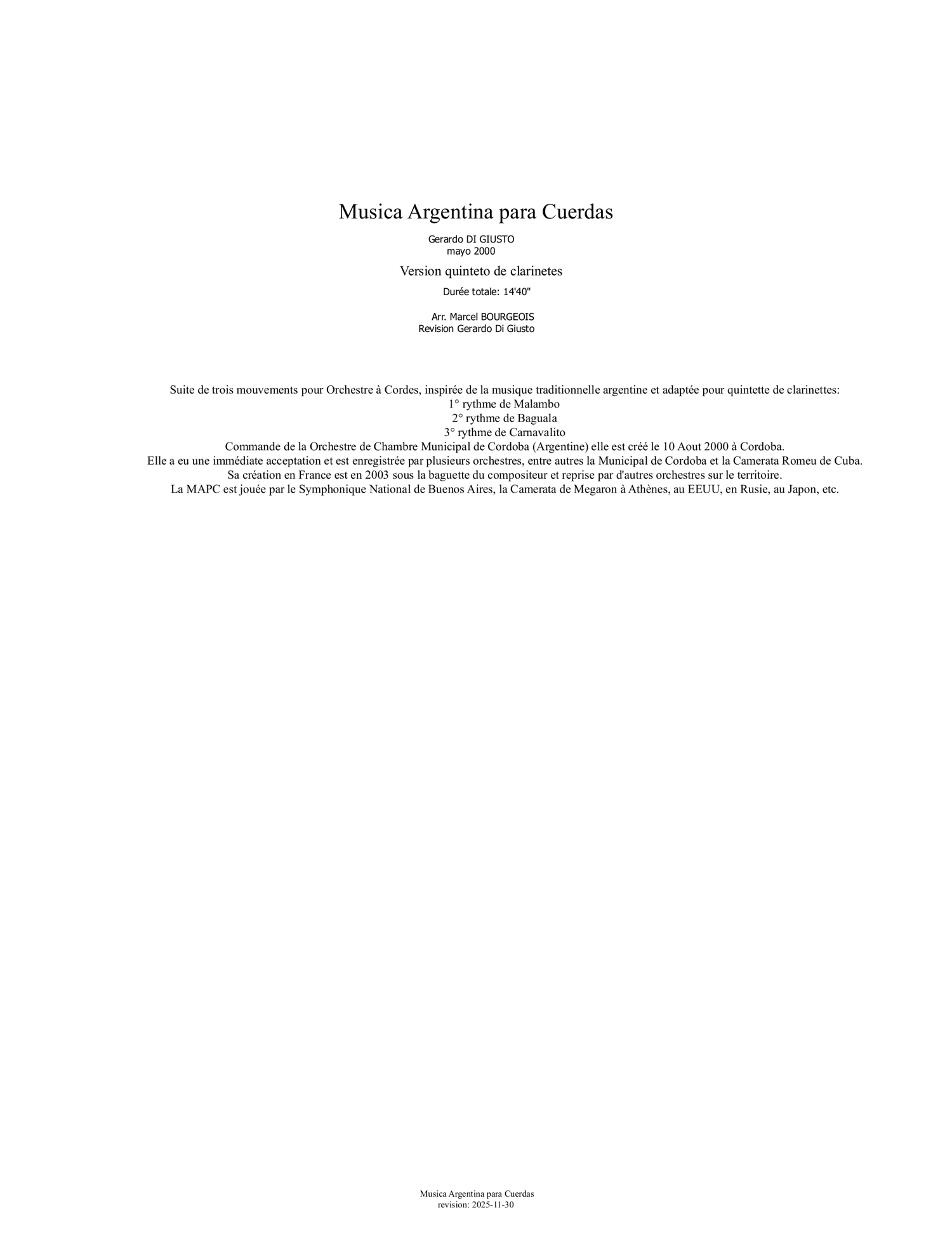 Musica Argentina version Quintette de Clarinettes