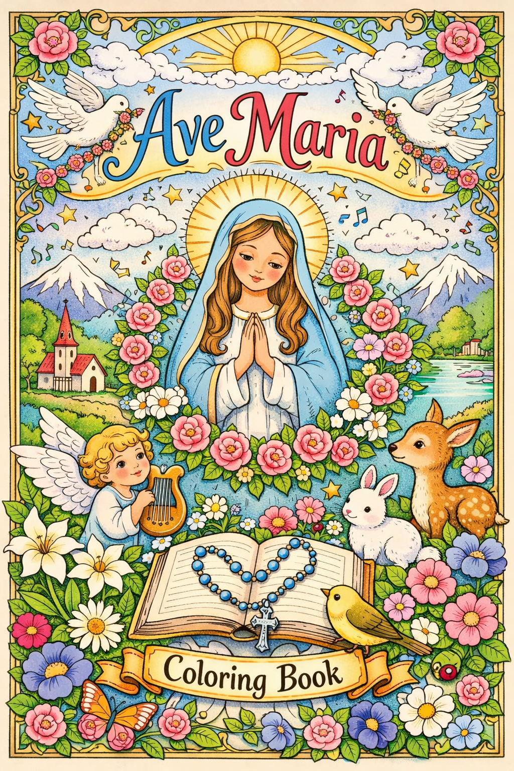 Ave Maria, coloring ebook, 79 designs, digital printable product, instantly download