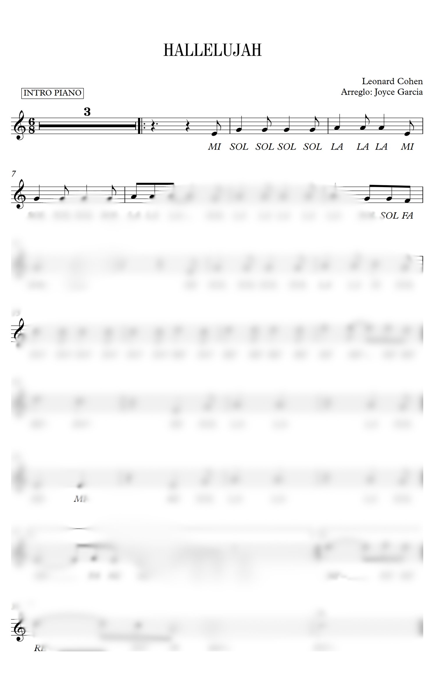🎼 Hallelujah (Aleluya) - Partitura melodía PDF
