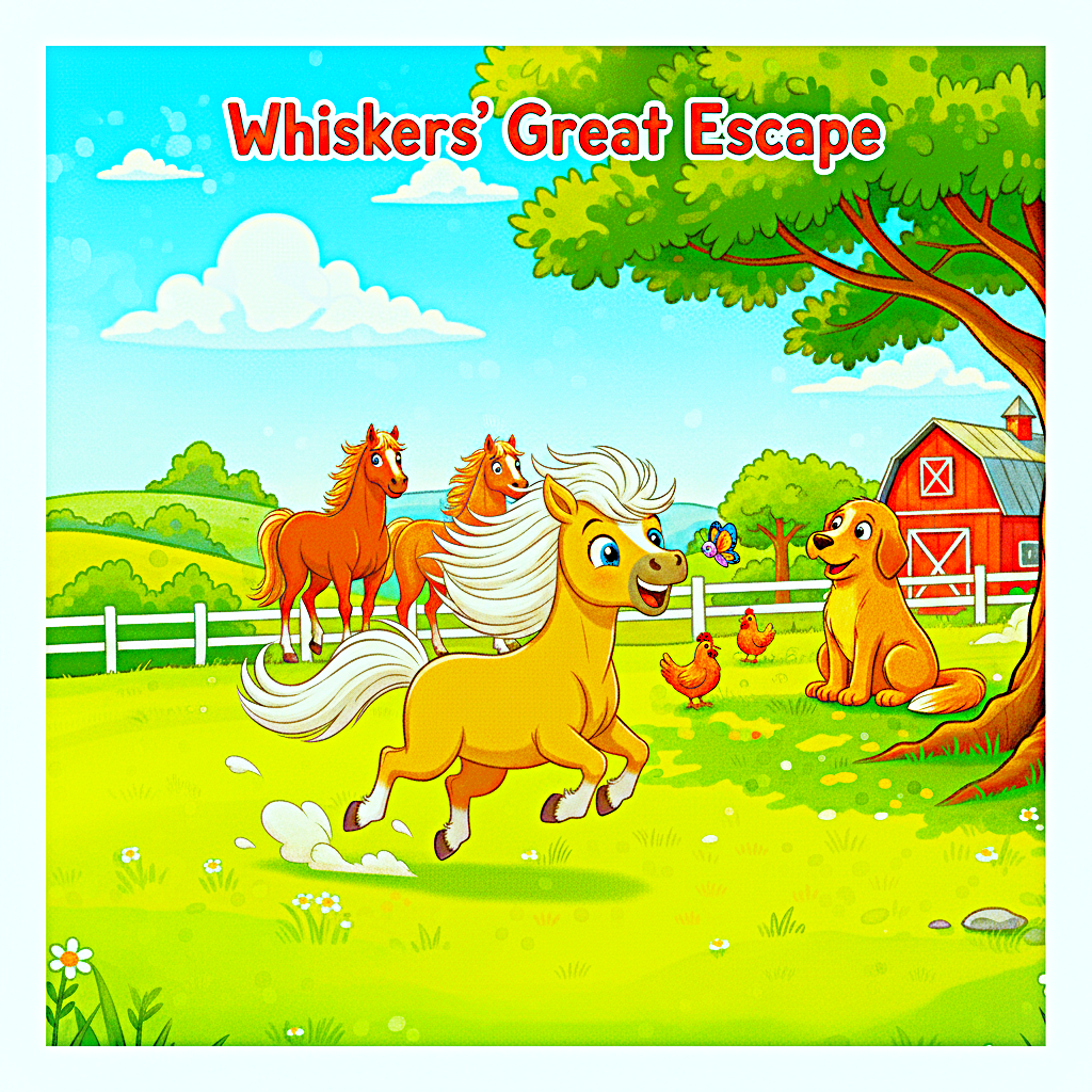Come meet Whiskers, a sweet little pony who lives on a busy farm! All Whiskers wants to do is gallop like the big horses, but he feels too small. With the help of his new friend, Pip the butterfly, Whiskers learns that even the smallest steps can lead to the biggest adventures. This heartwarming story is all about trying your best, never giving up on your dreams, and the joy of having a friend who believes in you. Join Whiskers as he discovers his courage and finds his own special way to run free.