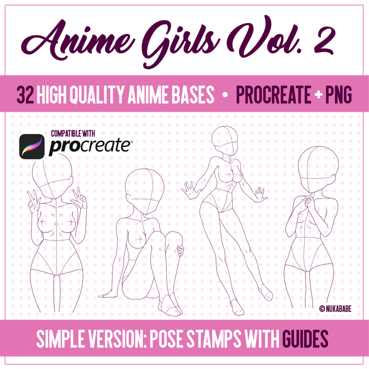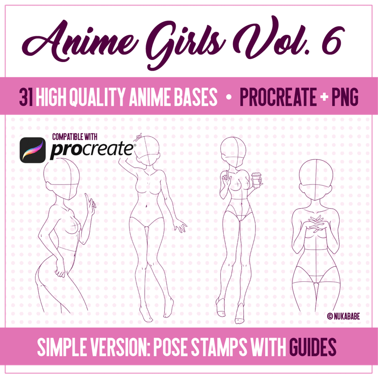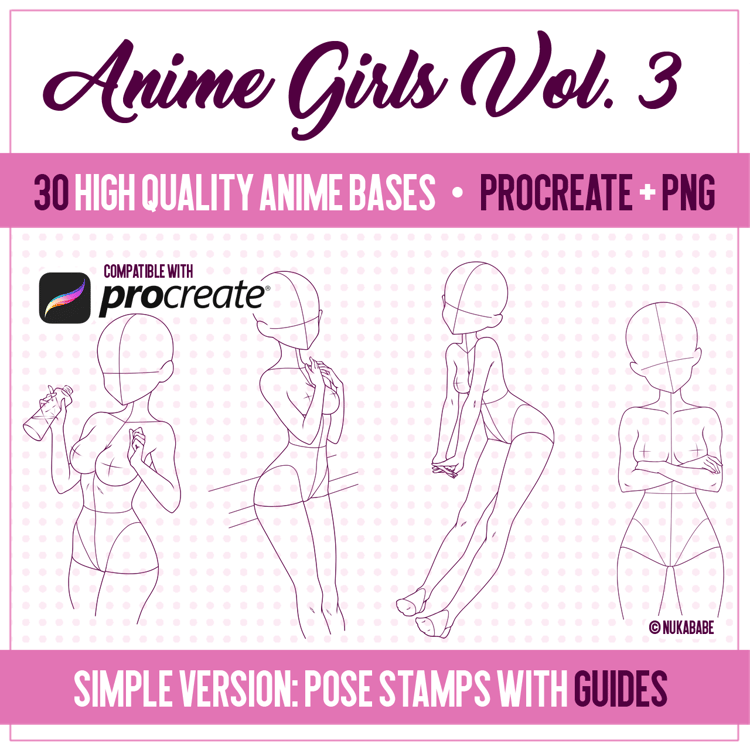 Anime bases for beginners [Procreate + PNG]