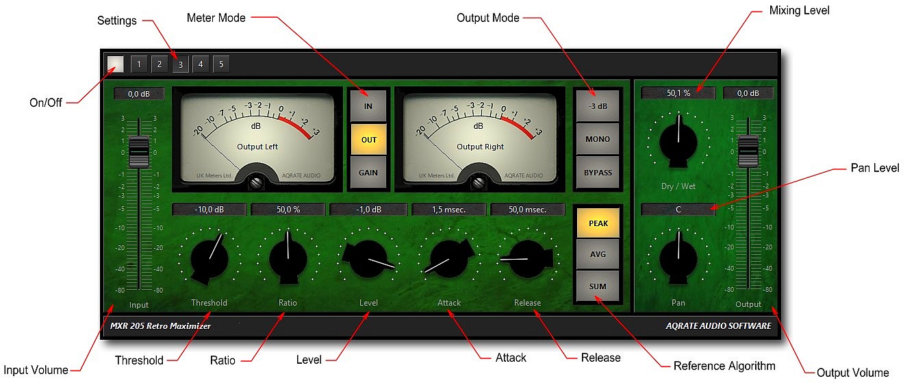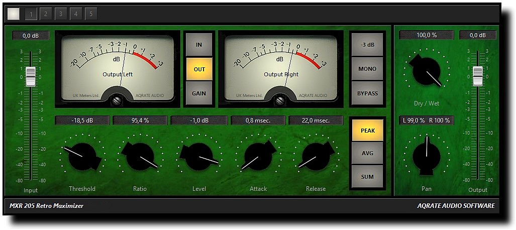 This maximizer plugin gives your productions the punch you've always wanted. The algorithms are based on analog devices, instead of dB, they calculate in VU. This smooth and highly musical dynamic boost is a real eye-catcher, not only for jazz or acoustic instruments.
