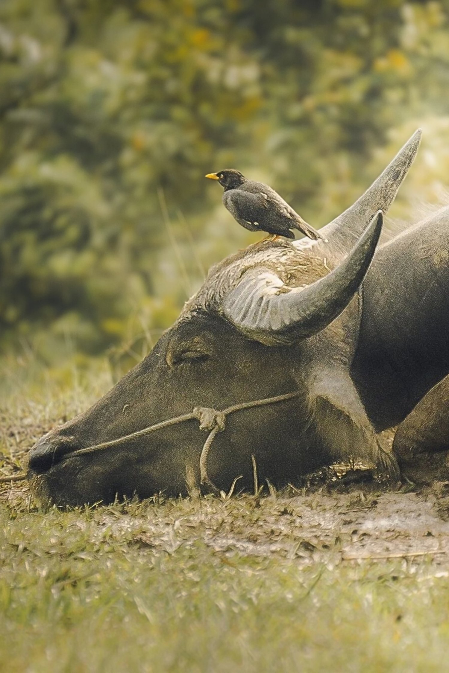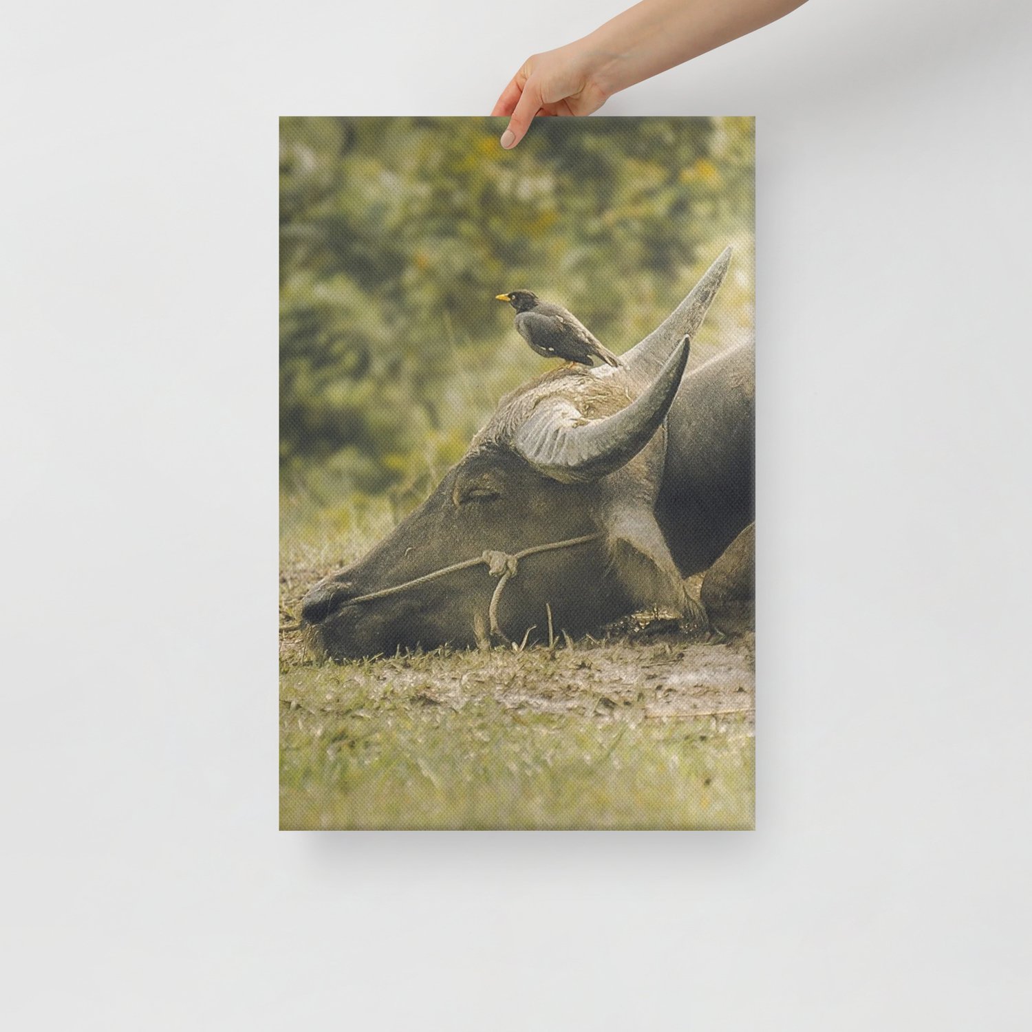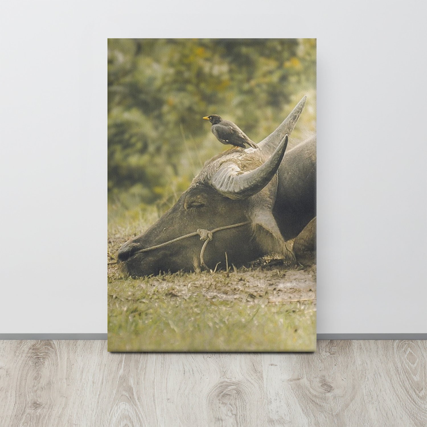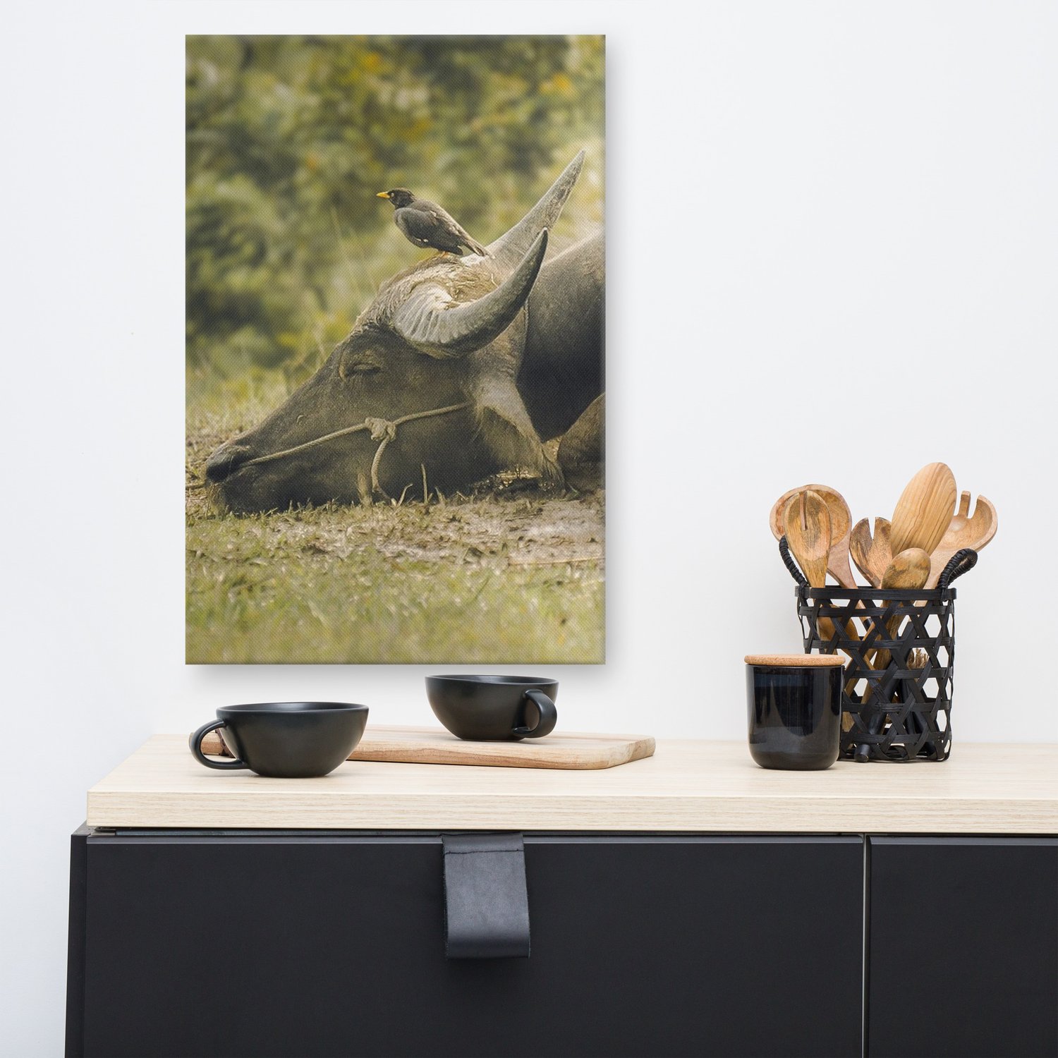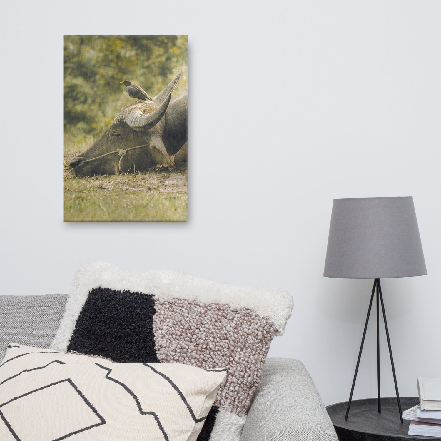 Peaceful Companions - Buffalo & Bird: Canvas Print