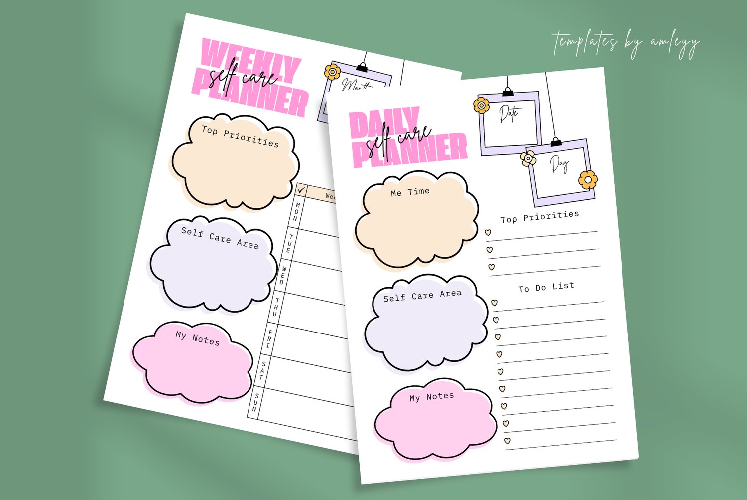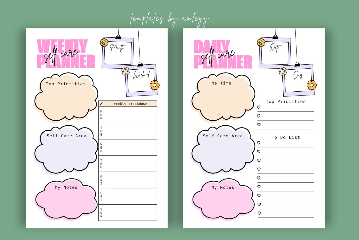 - 2 Cute Aesthetic Self care Planner Template PNG