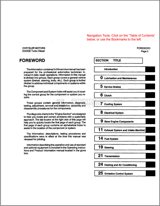 1990 Dodge Rear Wheel Drive Ram Truck Service Manual Part No. 20M1189 With Diesel Supplement