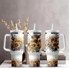 Highland Cow 40 oz, Sunflower Farmland Tumbler Sublimation Design Digital Download PNG Instant DIGITAL ONLY, Tumbler with Handle Wrap