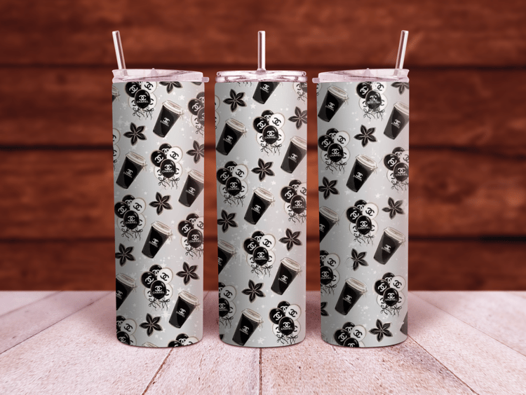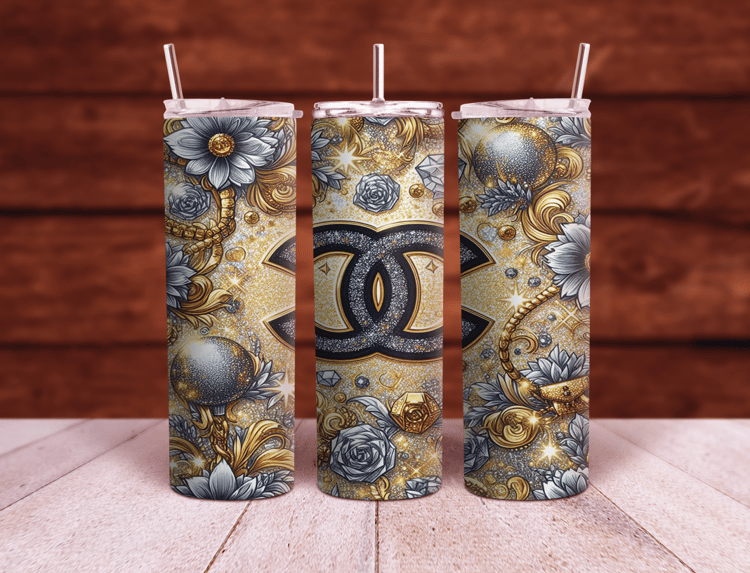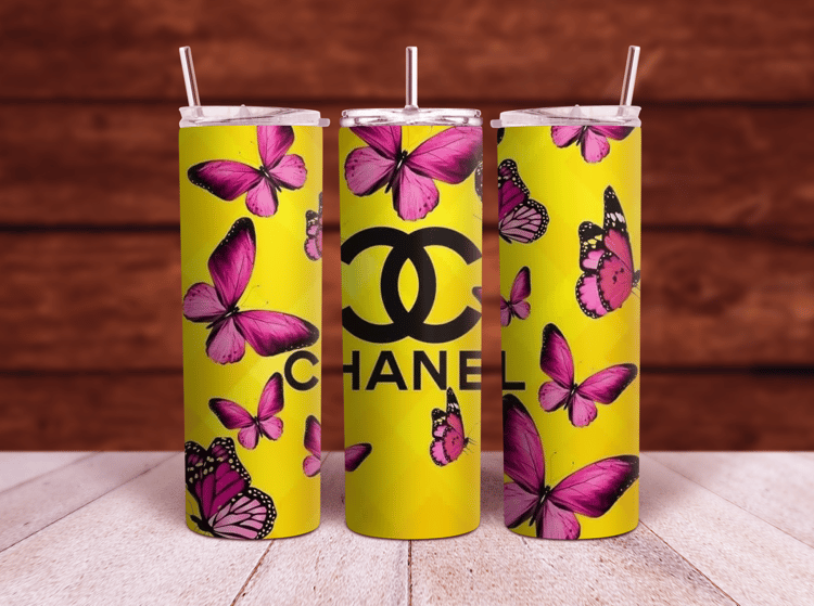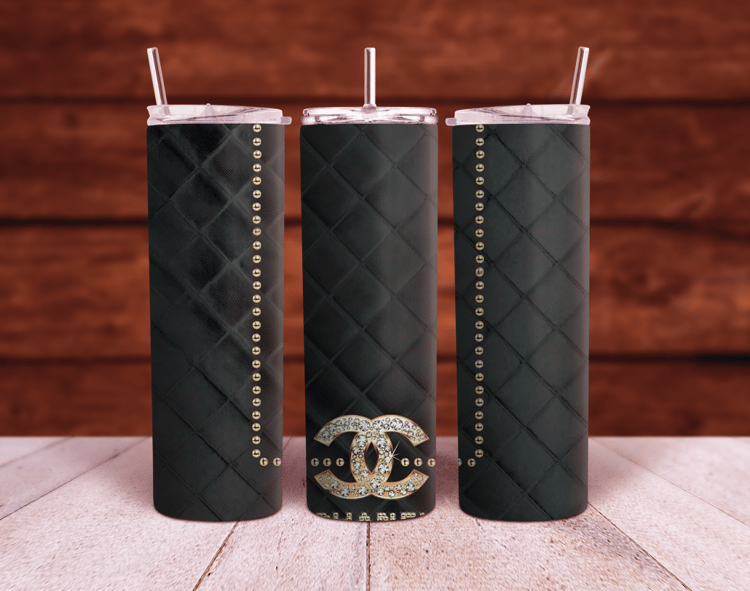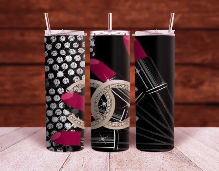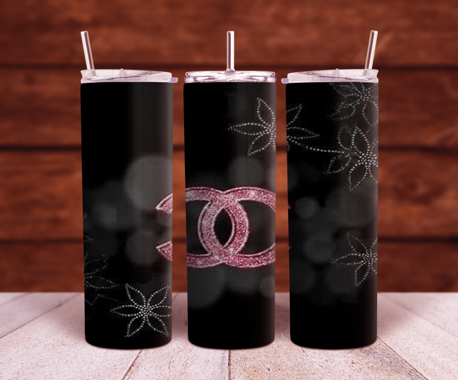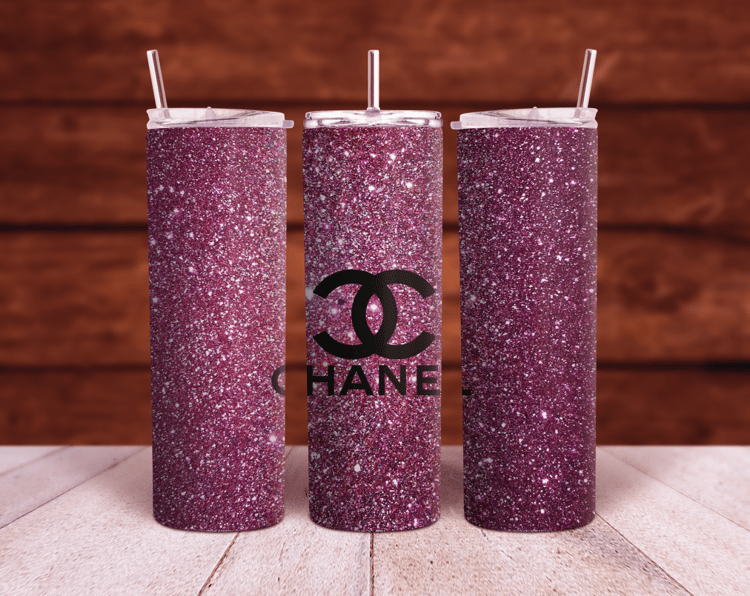Chanel CC logo Pink glitter 20oz and 30oz Sublimation Tumbler Wrap PNG