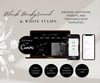 Black BG and White Tulips Website, RSVP, and Digital Invitation Canva Template