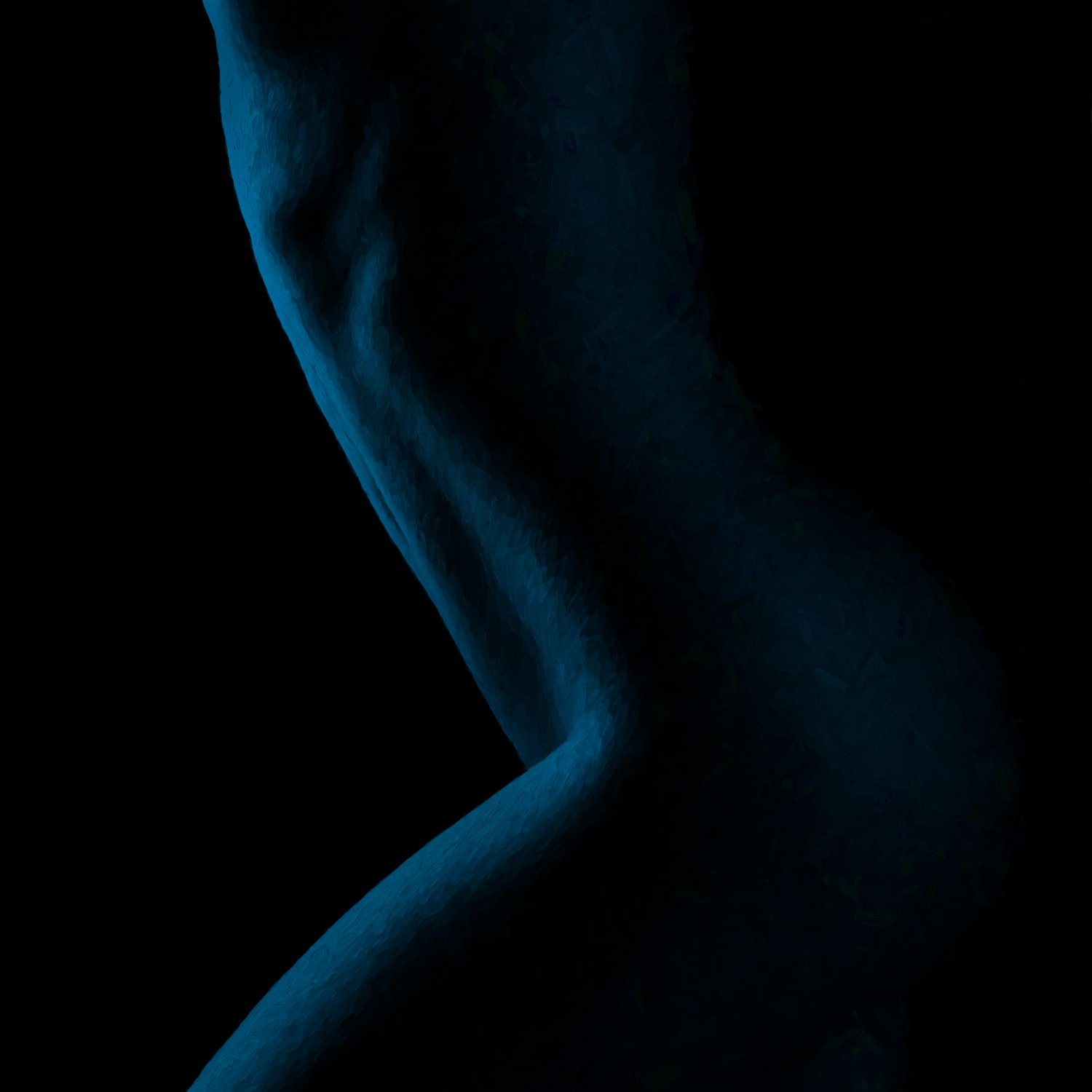 - Notes from the Artist: This piece was created to celebrate the beautiful angles in a woman’s body. This is a study in form and shape, light and shadow. Blue tones are used to express a feeling of calm rather than passion. The front side of the body is captured to show angular perspectives, which is contrasted by implied curves of the back.