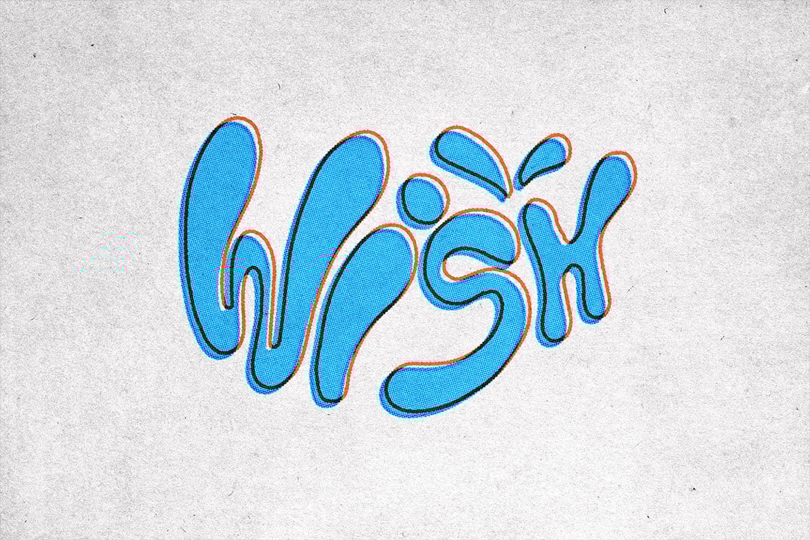 Retro, psychedelic design with a bold and playful style. The word is rendered in fluid, wavy typography that mimics the look of melting or liquid letters, giving it a sense of motion and energy.