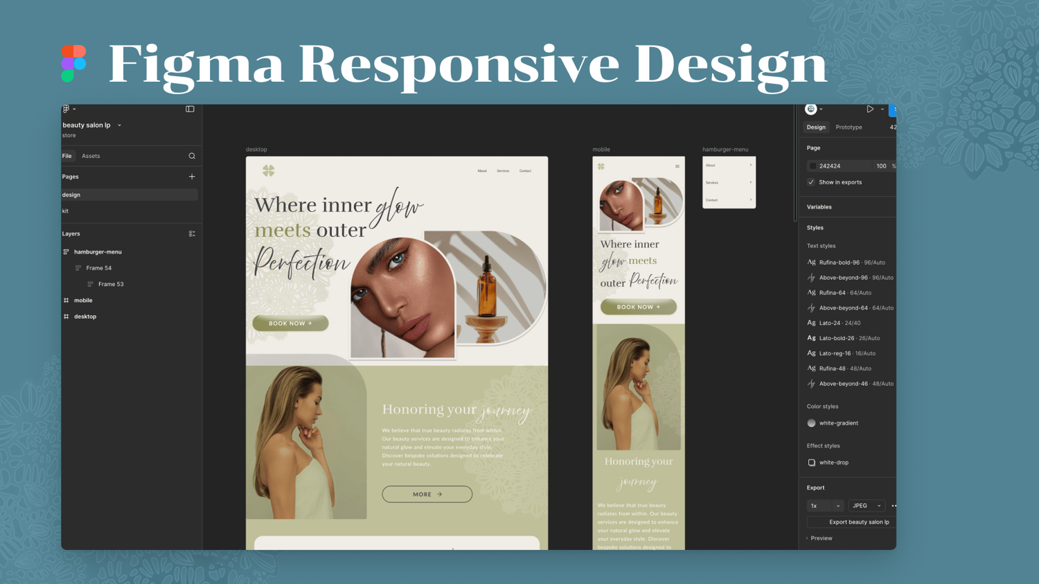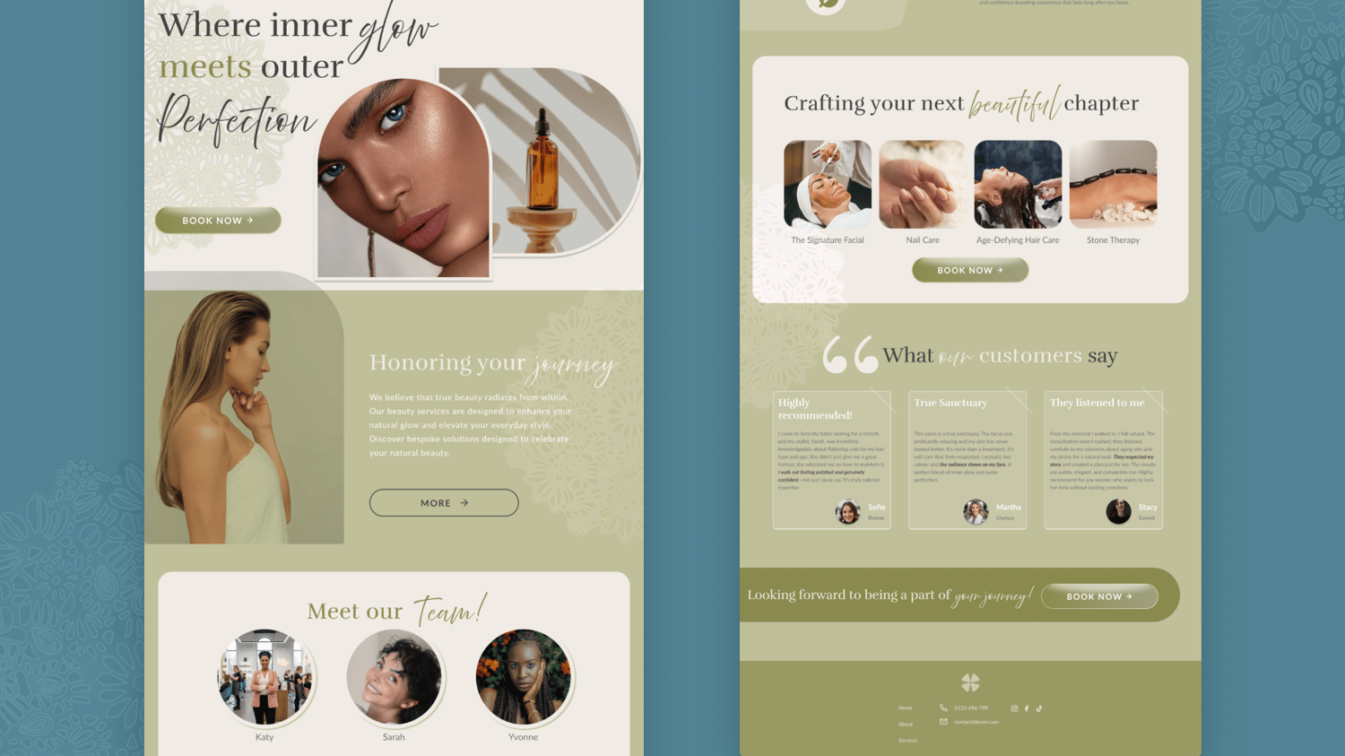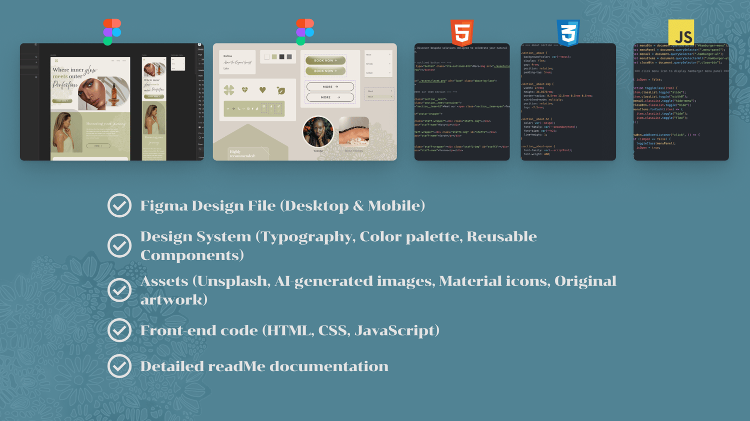 An elegant, responsive, and customizable website template bundle designed for beauty salons, spas, and service-based businesses! This bundle delivers everything you need from concept to code: a responsive Figma Design File with a UI kit, hand-coded, dependency-free HTML, CSS and Vanilla JavaScript files.