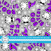 Sarcastic and sweary halloween ghosts wearing witch hats, with middle fingers moons and stars on grey.