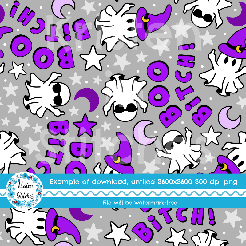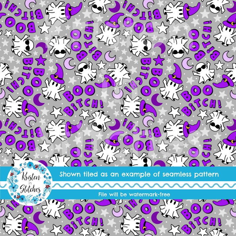 Boo Bitch! Sweary Sarcastic Halloween Ghosts Seamless Pattern