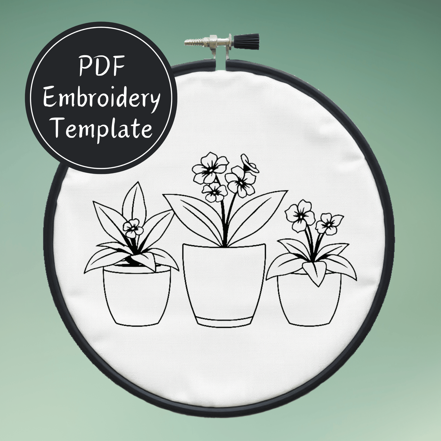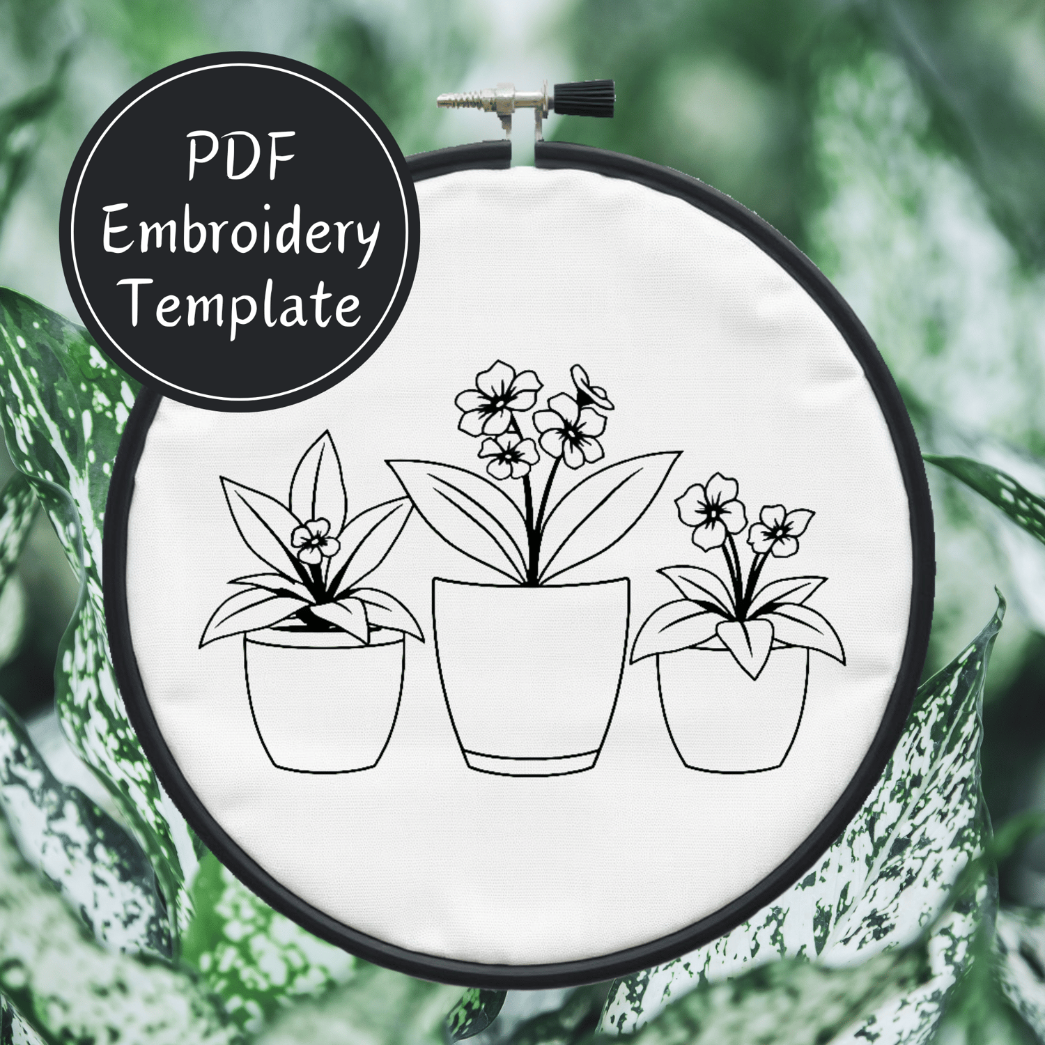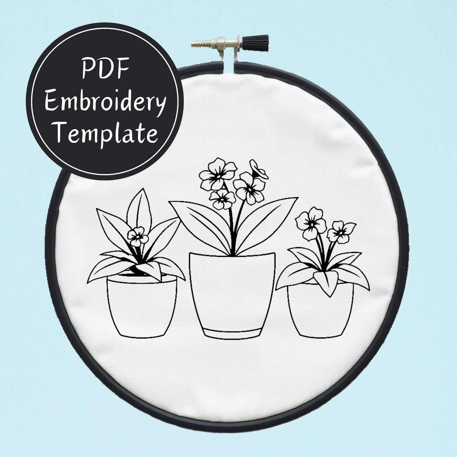 Trio of Potted Plants Hand Embroidery Pattern DIY Embroidery