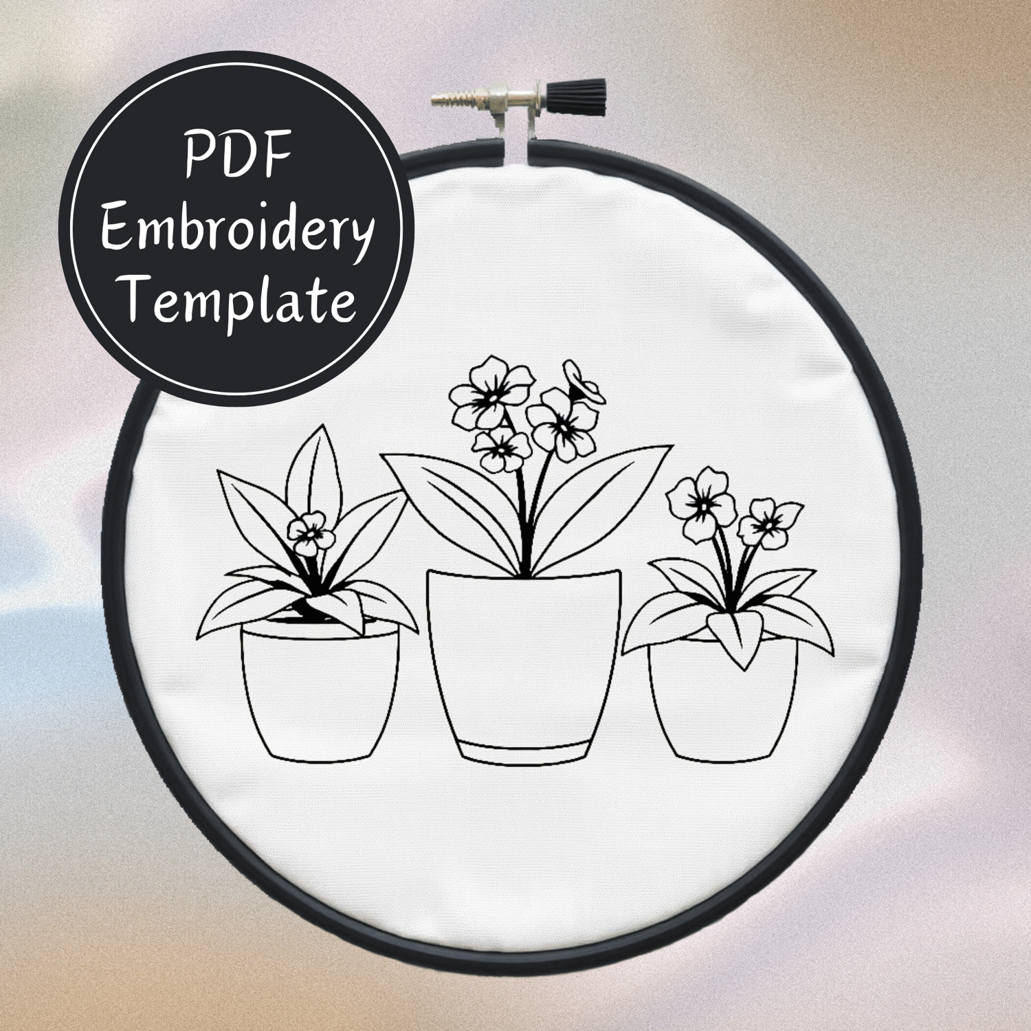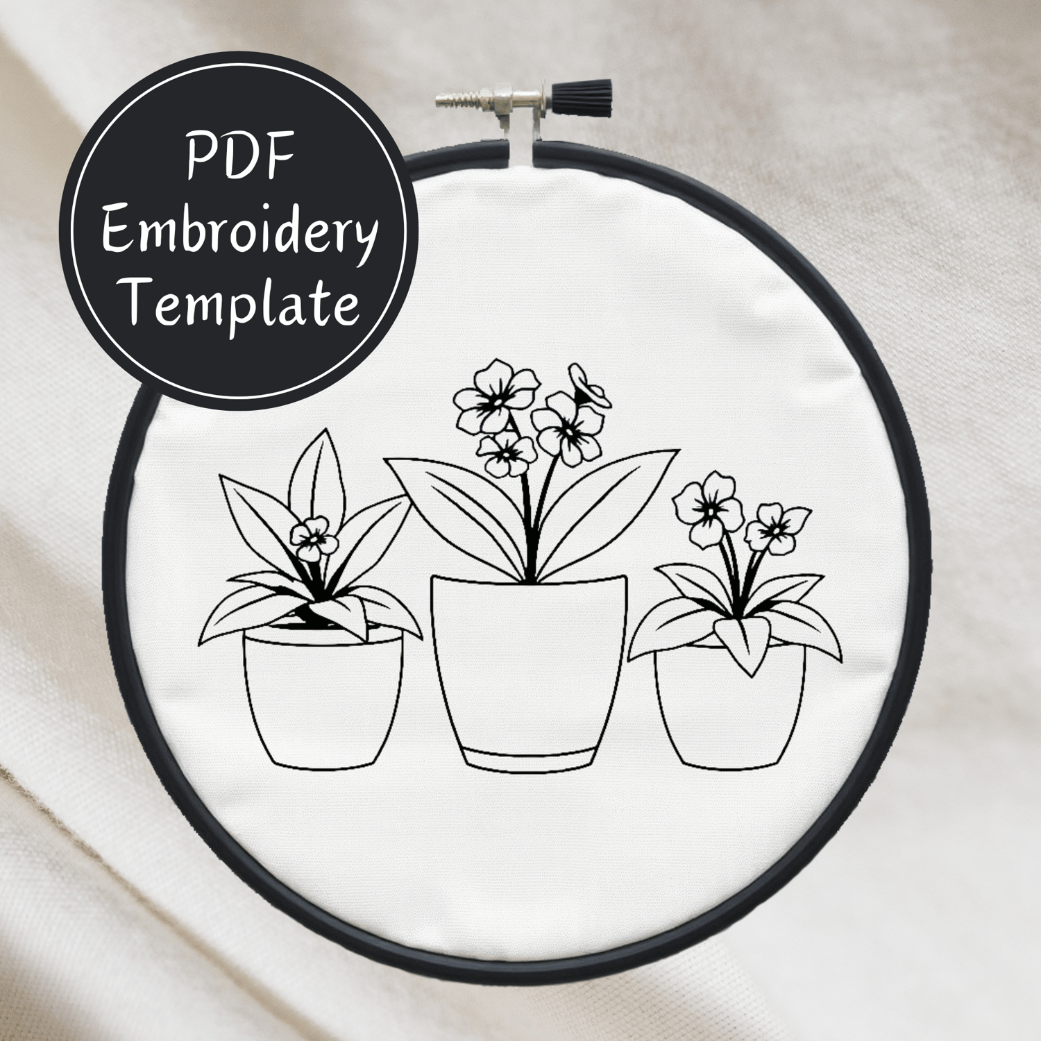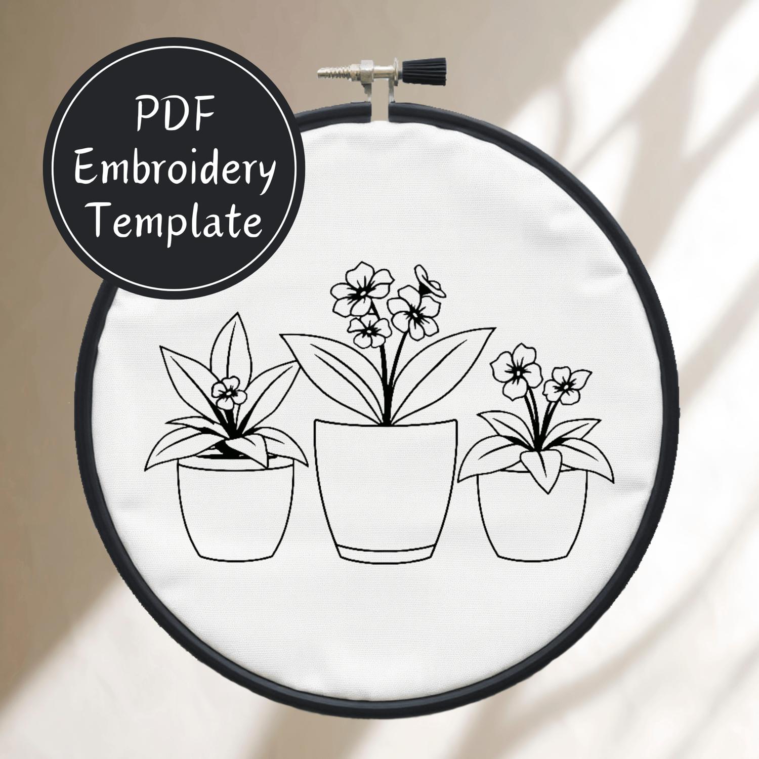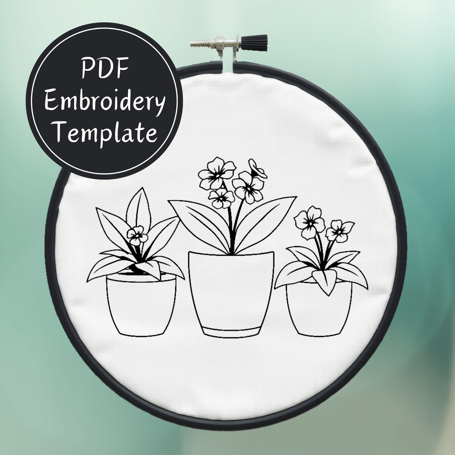 Trio of Potted Plants Hand Embroidery Pattern DIY Embroidery