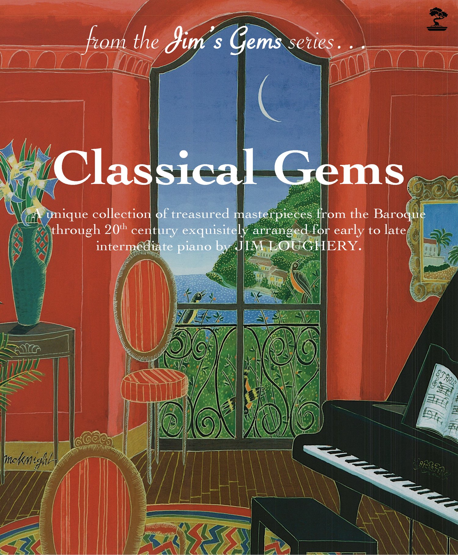 From the Jim's Gems book series, a unique collection of treasured masterpieces from the Baroque to the 20th Century exquisitely arranged for early to late intermediate piano by Jim Loughery. Featuring cherished and rare works by composers such as Bach, Mozart, Beethoven, Chopin, Liszt, Debussy, Satie, Joplin, Gershwin, and more!