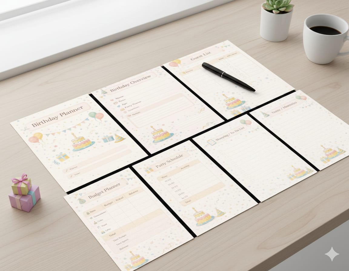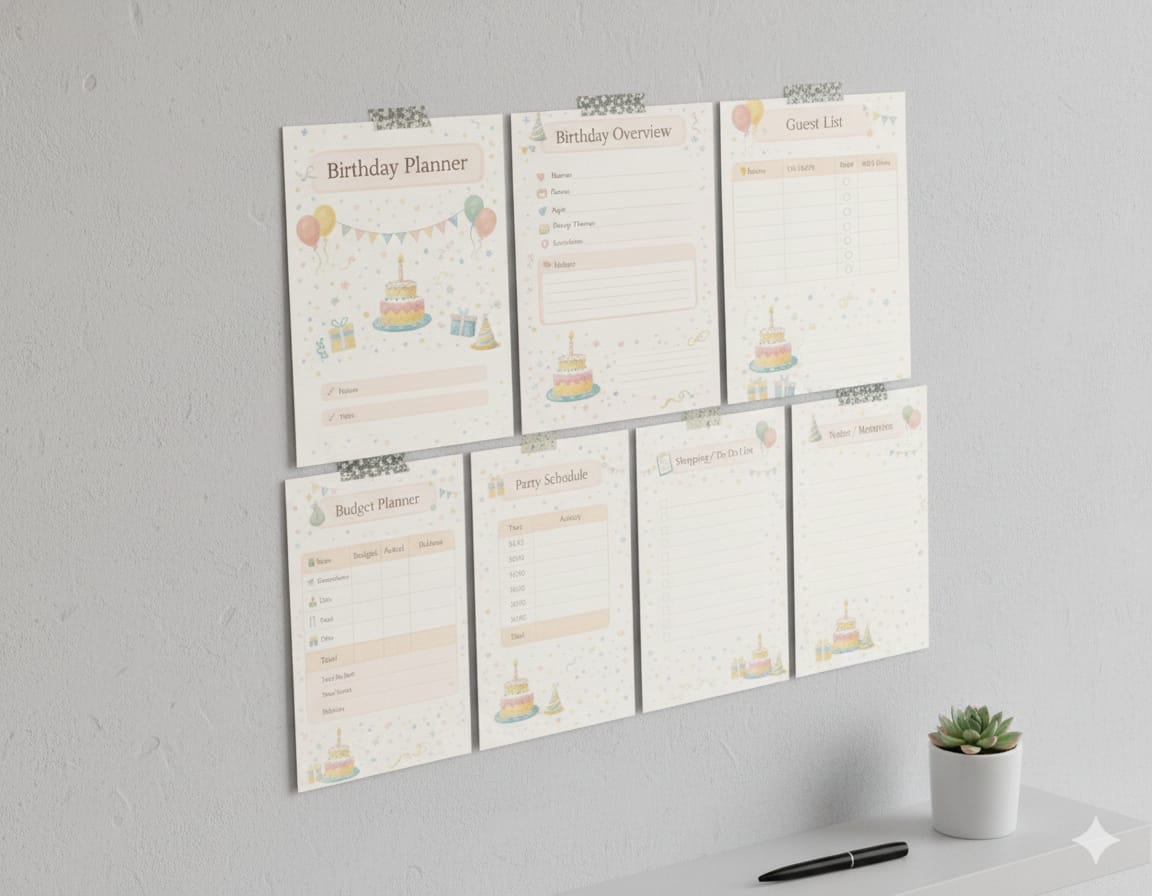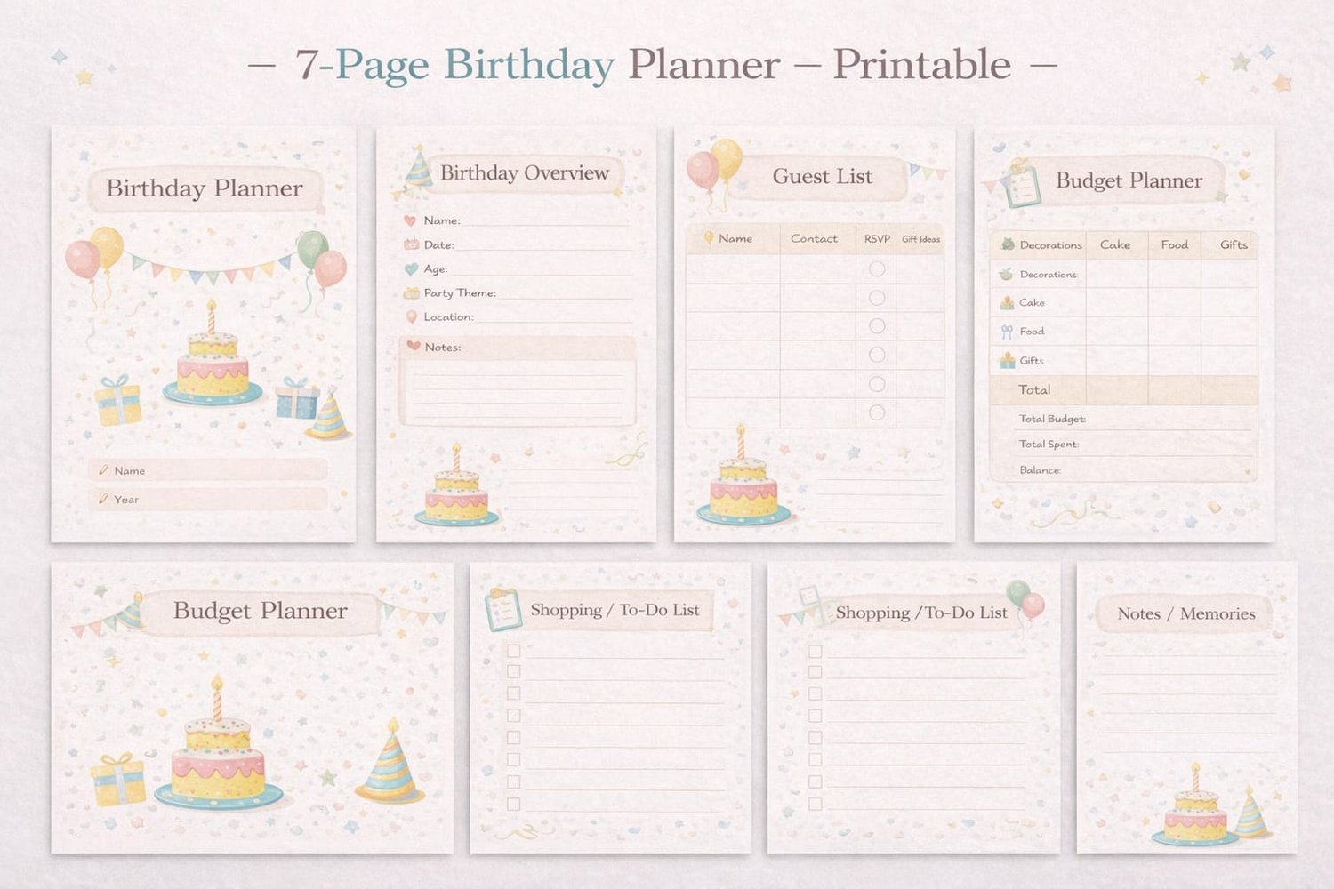 This Printable Birthday Planner (7 Pages) helps you organize every detail of a birthday celebration β from guest lists and budgets to party schedules and memories.