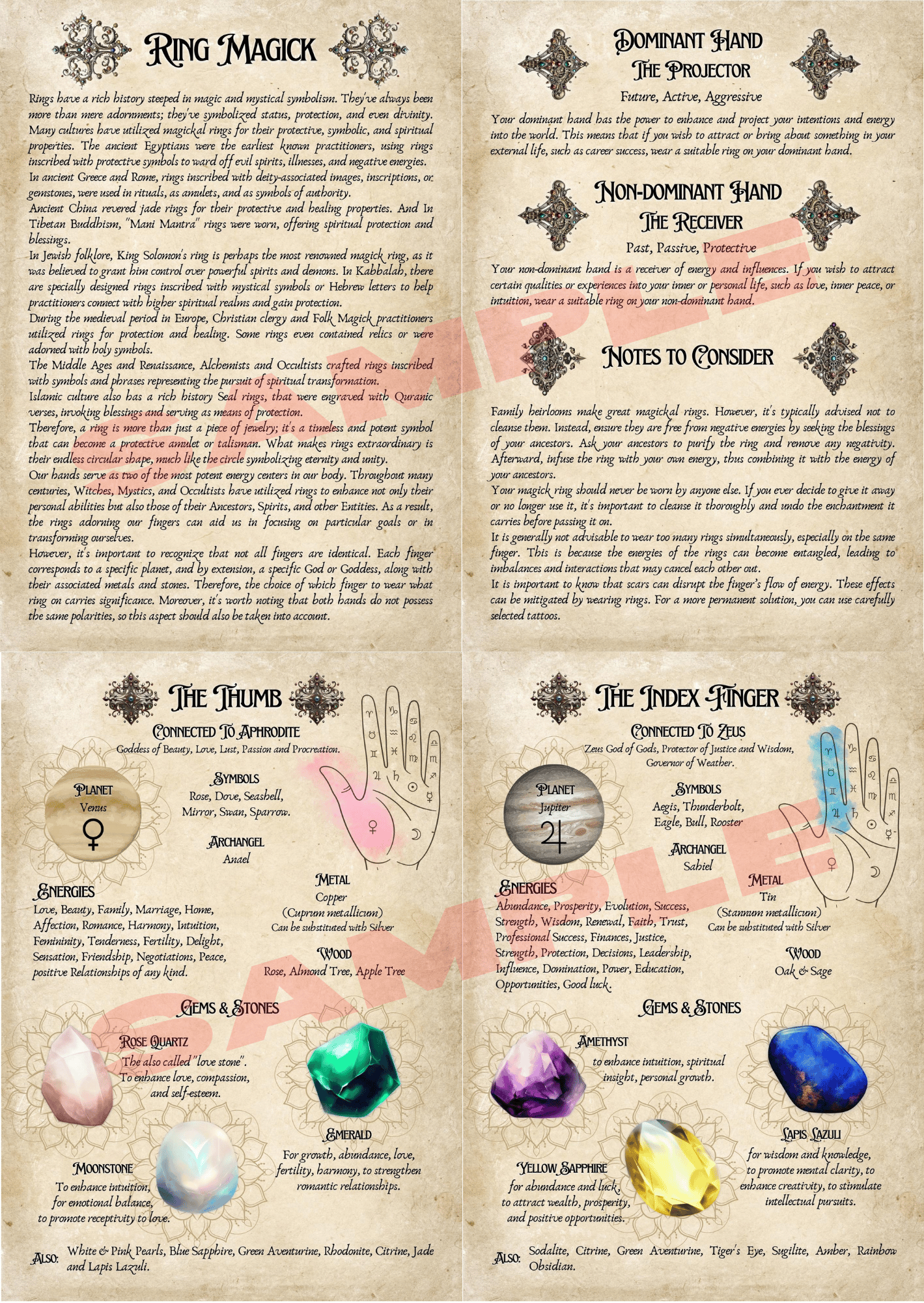 Inside, you’ll learn finger correspondences, ring enchantment rites, and the art of dactylomancy, using rings for guidance, answers, and intuitive insight.