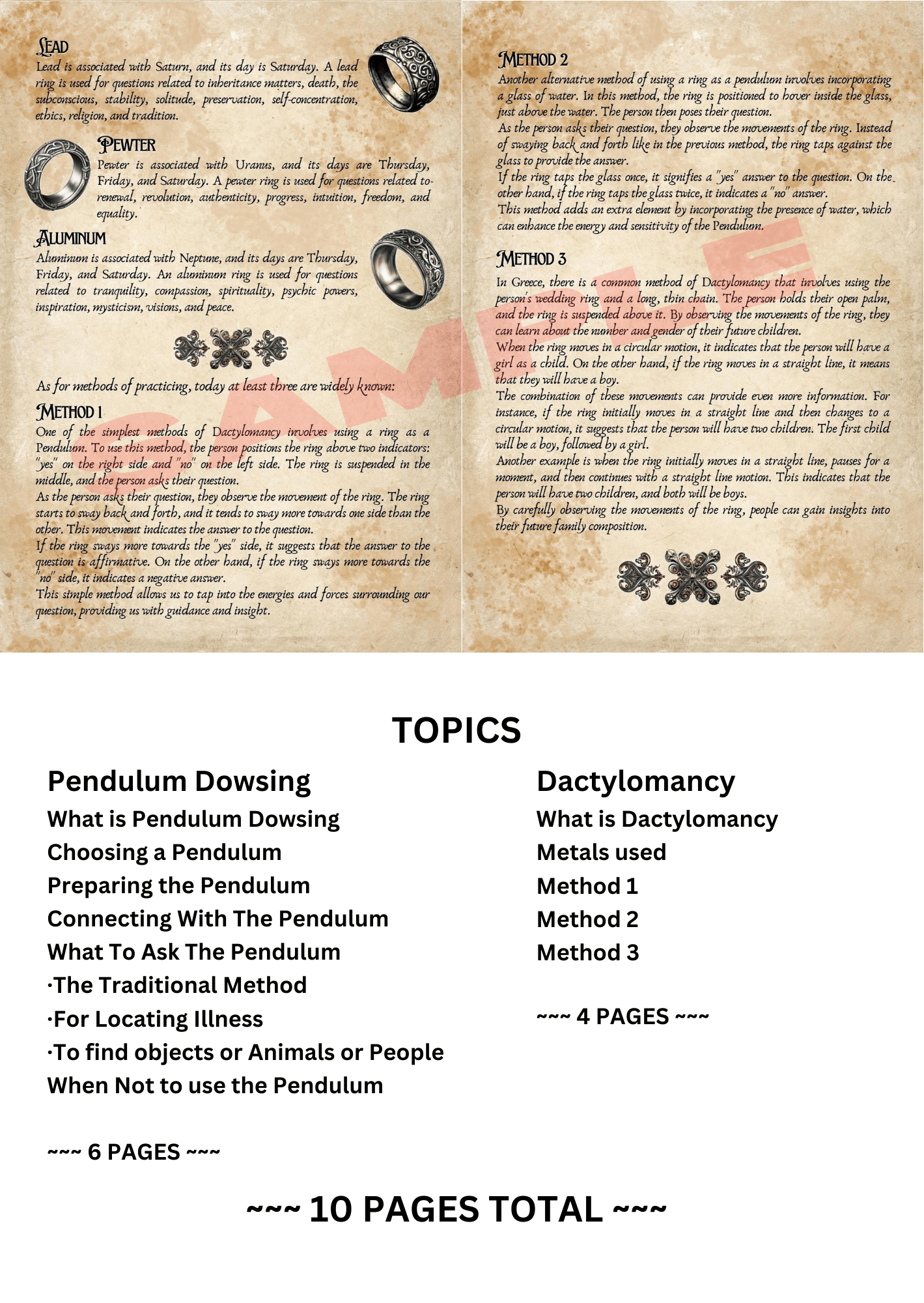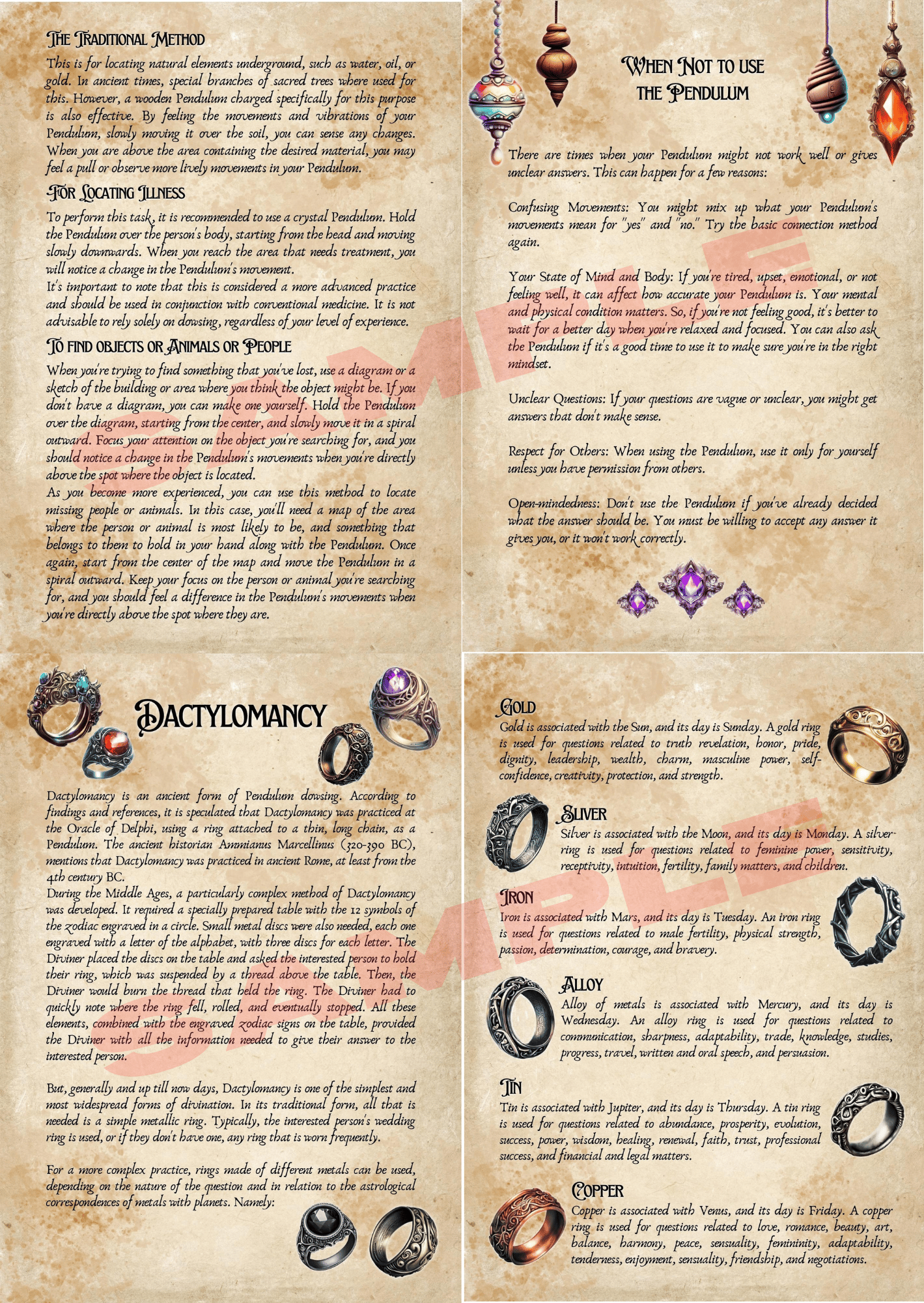 Rooted in ancient lore and sacred practice, this grimoire explores the magick of metals, fingers, planets, and hands, revealing how a single ring can become an amulet, a talisman, or a pendulum.