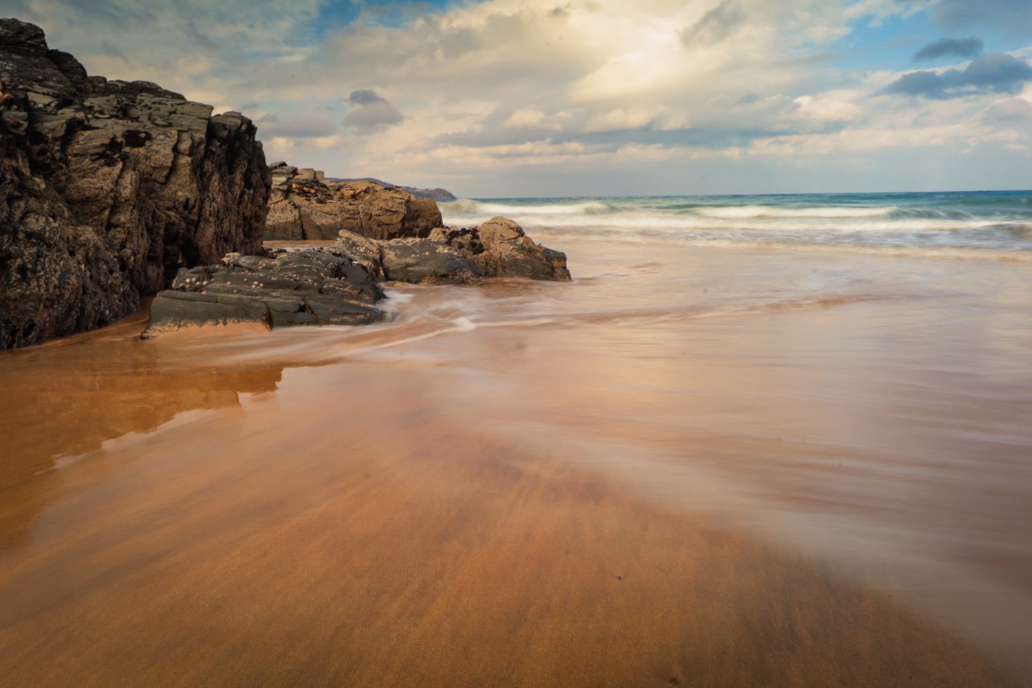 Water and sand blur together in slow motion along the shoreline at Culdaff. A soothing coastal photograph that brings a sense of calm and open space into any room.