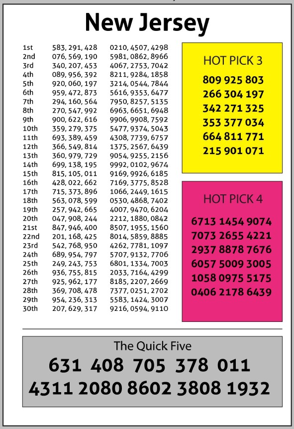 50 packed pages of Pick 3 and Pick 4 lottery