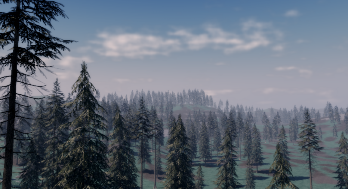 - Large forest map with a variety of hills and mountains