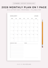 2028 Monthly Planner on One Page, Printable & Fillable, A4/Letter Size