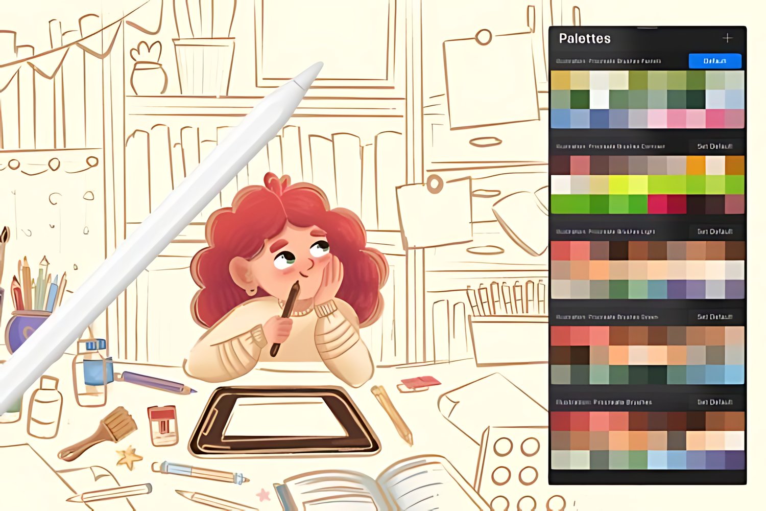 Brushes: Illustration_Brushes_2_procreate_brushes.brushset Palettes: Illustration _Procreate_Brushes.swatches Illustration _Procreate_Brushes_Contrast.swatches Illustration _Procreate_Brushes_Green.swatches Illustration _Procreate_Brushes_Light.swatches Illustration _Procreate_Brushes_Pastels.swatches