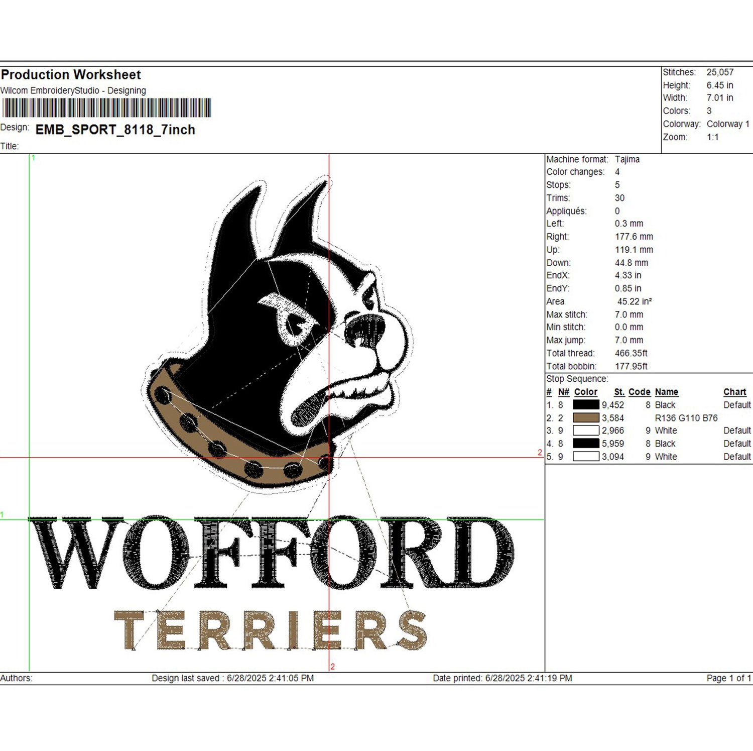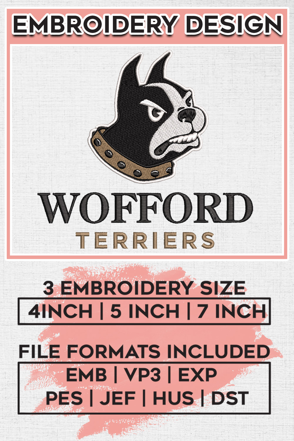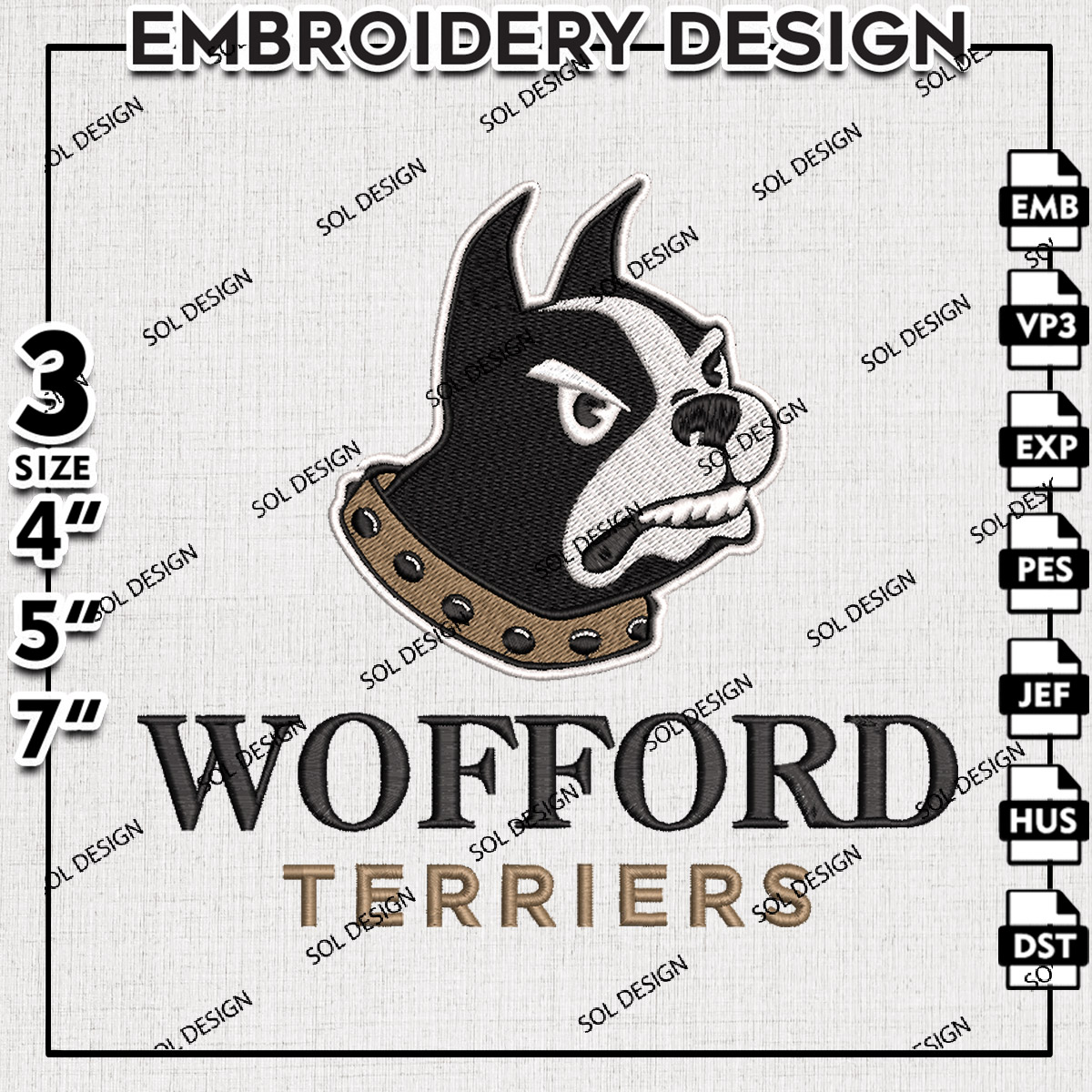 NCAA Wofford Terriers Football Team Mascot Logo Embroidery Files, NCAA Wofford Terriers Team Embroidery, NCAA College Football Teams, Wofford Team Emroidery, 3 sizes, Machine embroidery designs, Digital Download