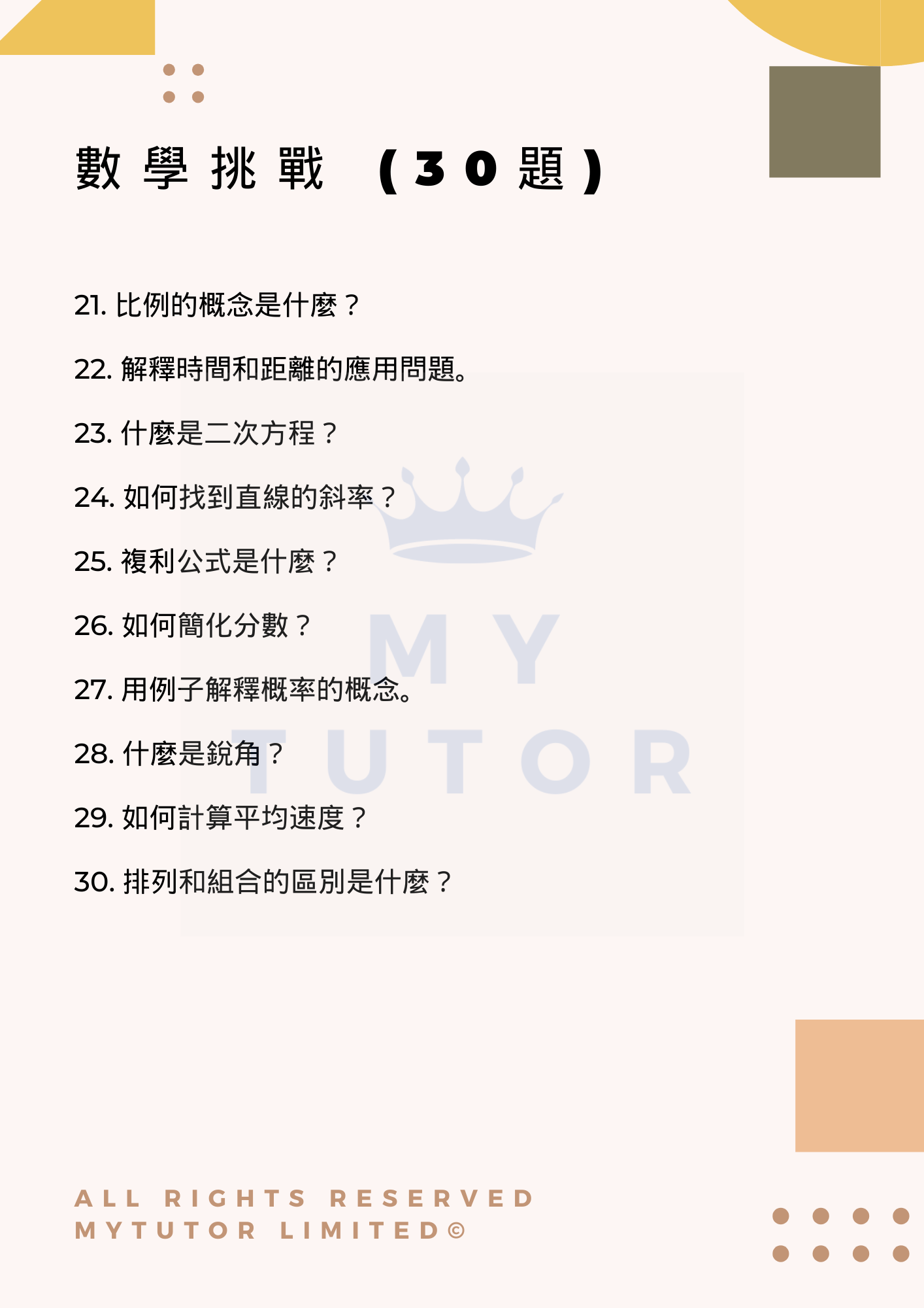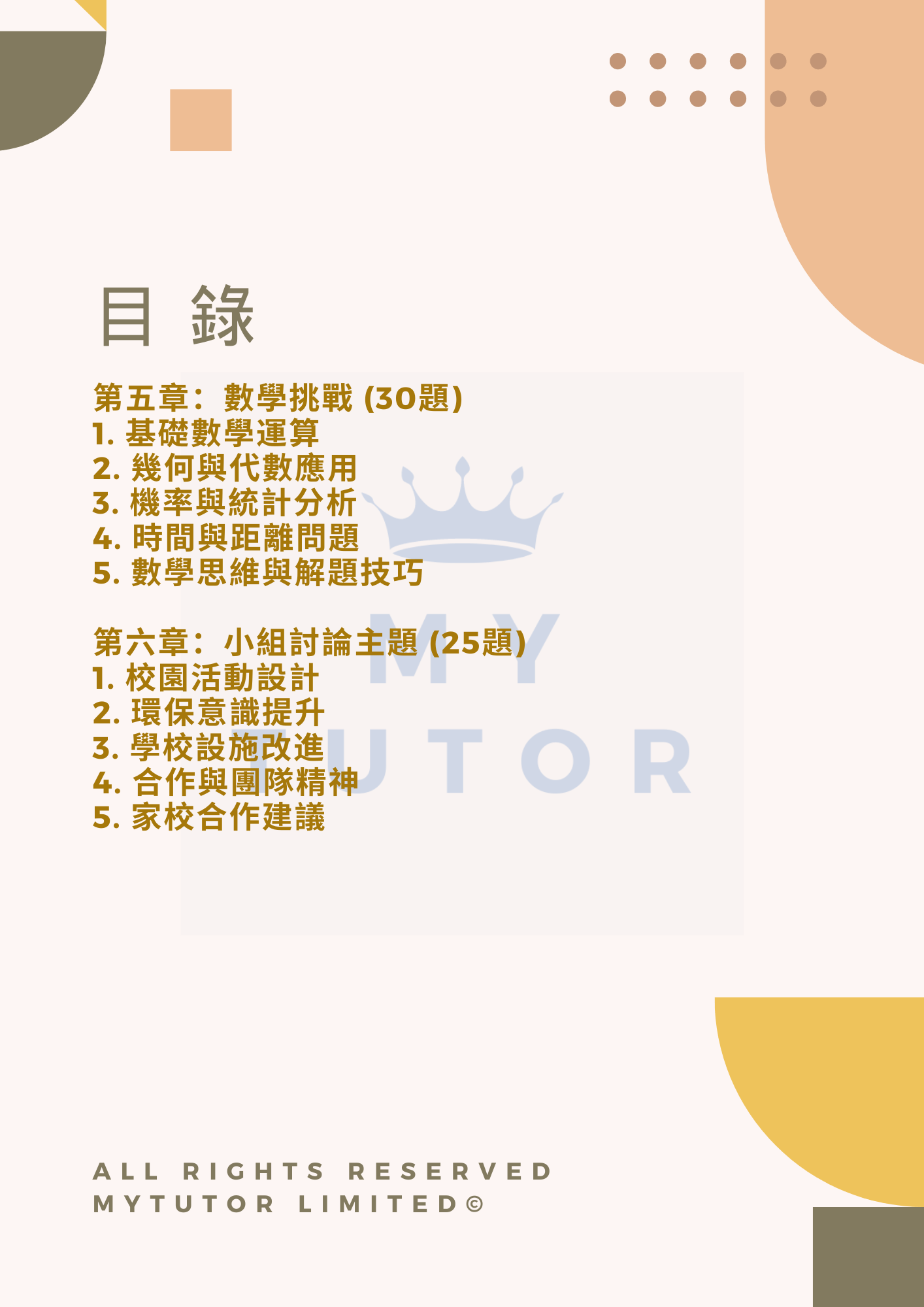 拔萃女書院畢業導師2025年親自編寫My Tutor HK 2025小學升中名校面試題 (200題)