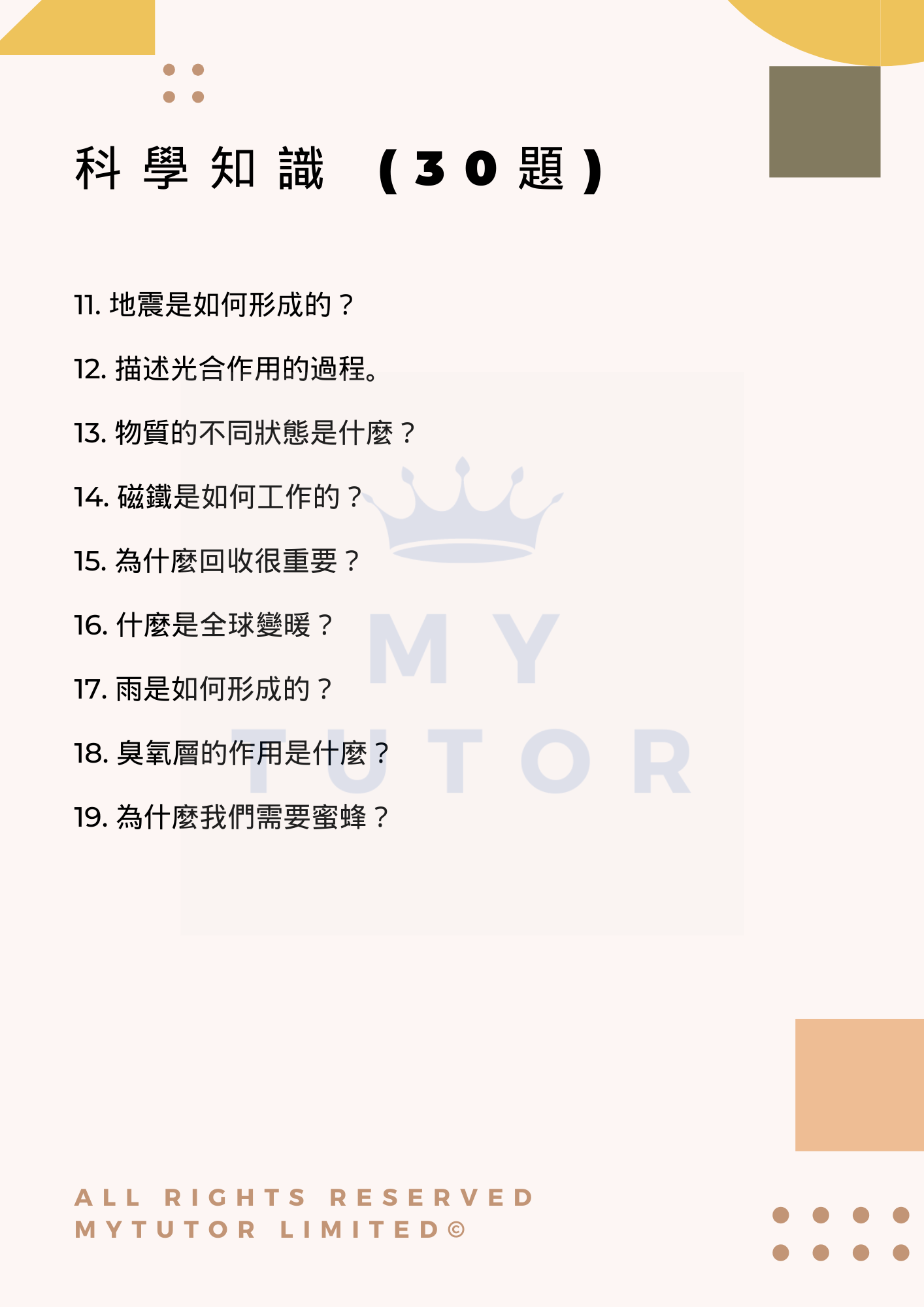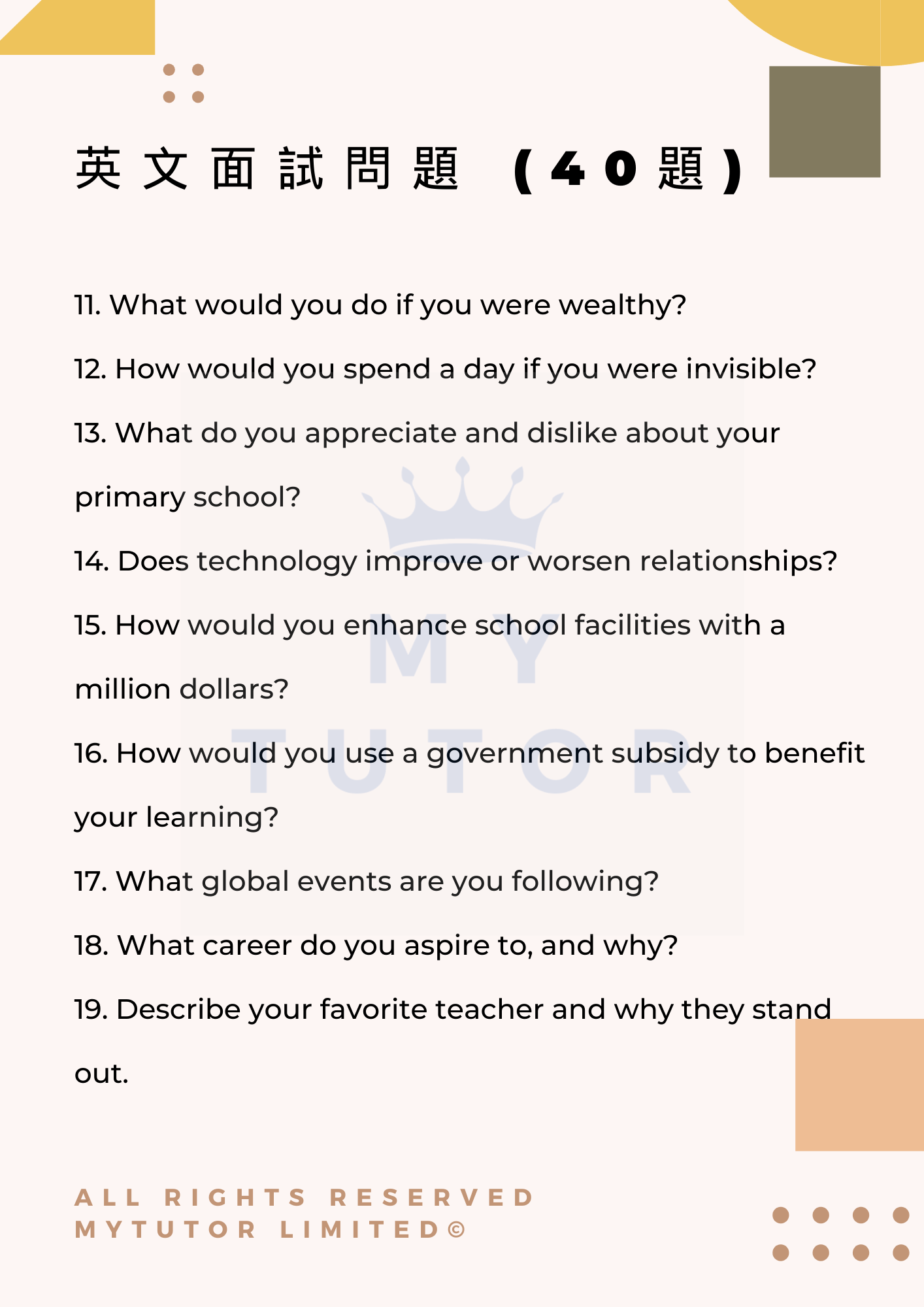 My Tutor HK 2025小學升中名校面試題 (200題)