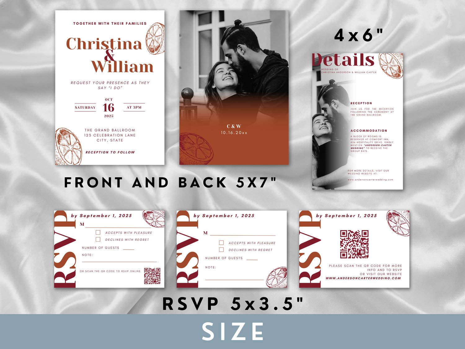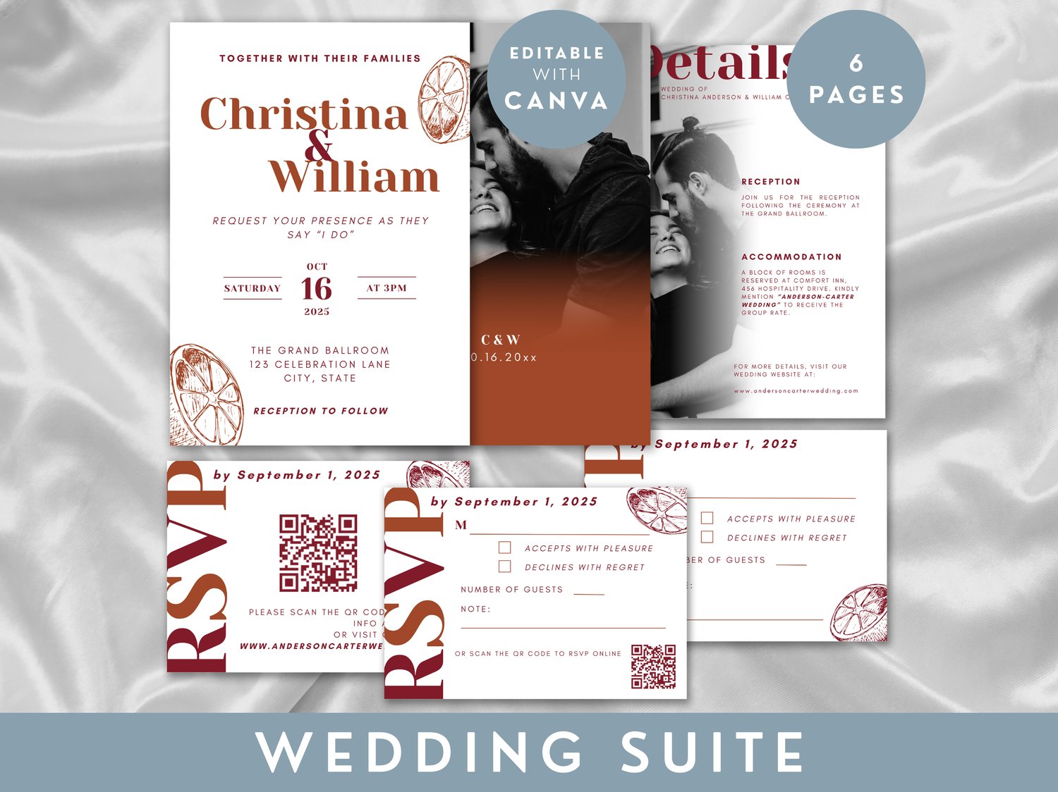 Terracotta Wedding Invitation Package Autumn Theme RSVP Detail Card Printable Template For Fall Wedding Set Of Stationery For Autumn 005