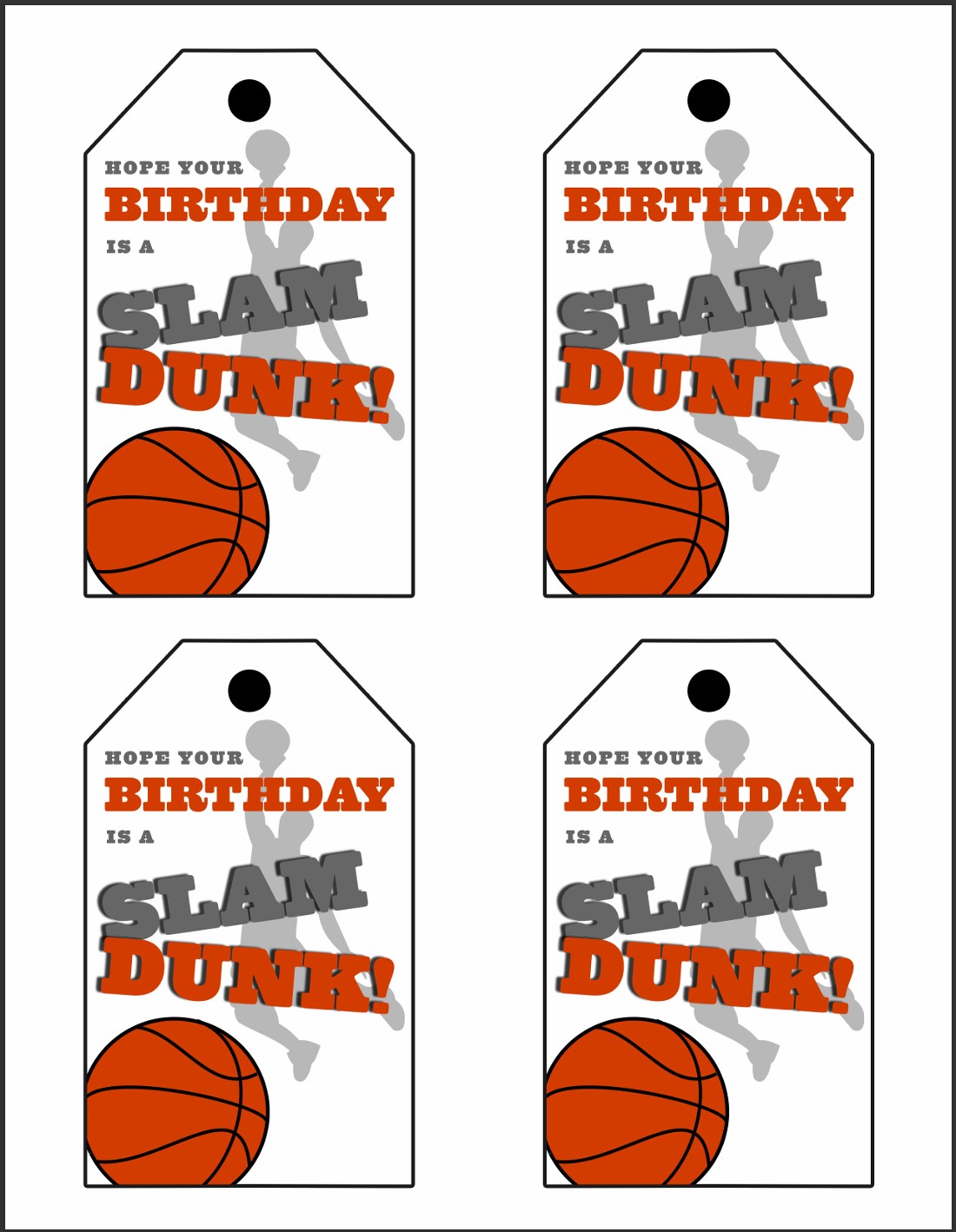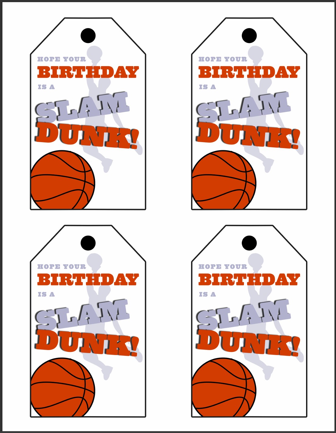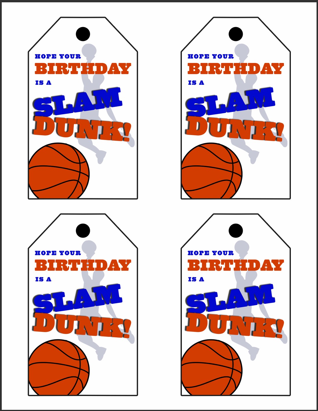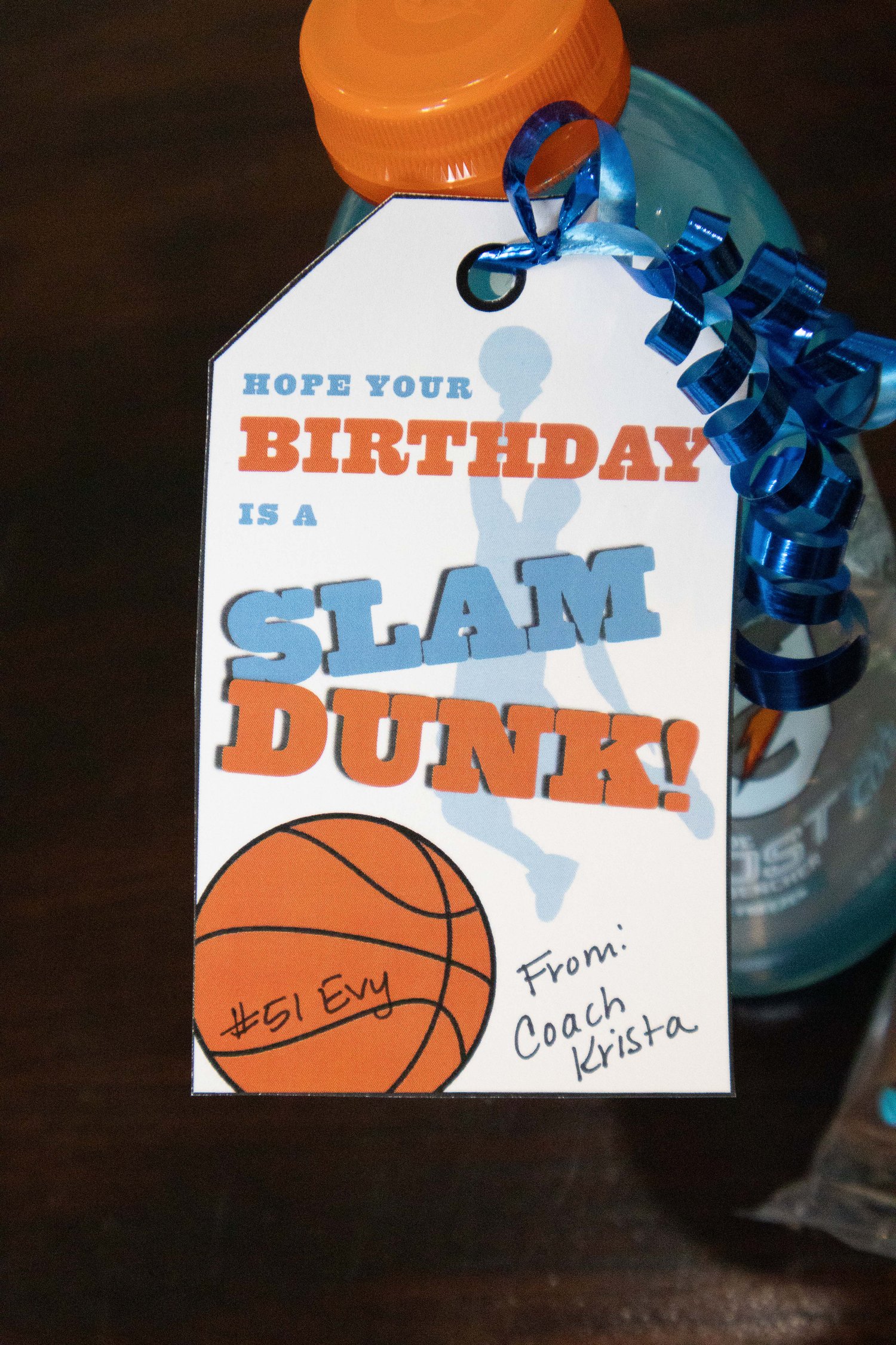 Basketball-themed birthday gift tag perfect for basketball players. Various colors to match your team colors.