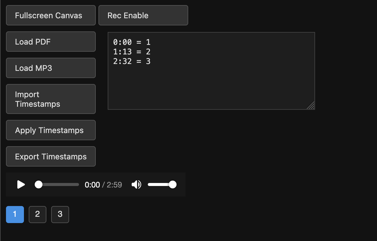 This app lets you load any PDF sheet music and sync it to an MP3 file. As the audio plays, the pages turn automatically at the exact timestamps you define — no tapping, swiping, or losing your place while practicing.