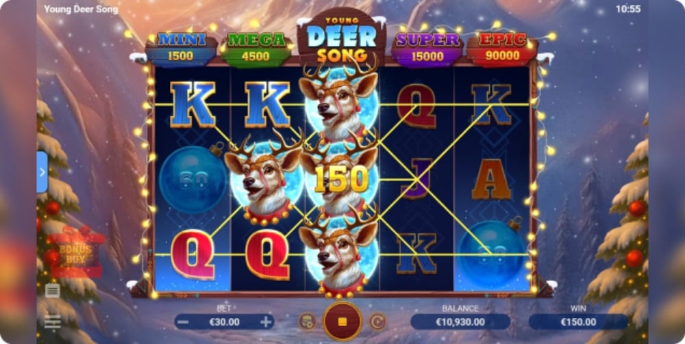 일반적으로 크리스마스를 테마로 한 슬롯은 축제 분위기로 가득 차 있습니다. 슬롯 리뷰에서 이러한 게임의 상당 부분을 확인할 수 있으며, 빨간색과 초록색, 산타 또는 엘프, 많은 틴셀이 튀는 것을 자주 볼 수 있습니다. 에보플레이는 순록이 야생으로, 크리스마스 트리가 스캐터로, 보울이 보너스 아이콘으로 등장하는 등 보다 미묘한 접근 방식을 선택합니다.