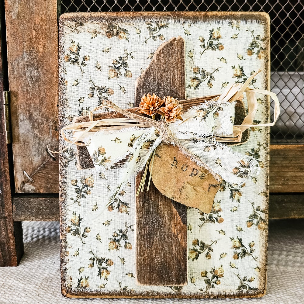 Rustic Neutral Floral Cross Shelf Sitter - Hope