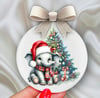 Beautiful Christmas elephant, watercolour with Christmas tree. For sublimation or print. PNG with transparent background