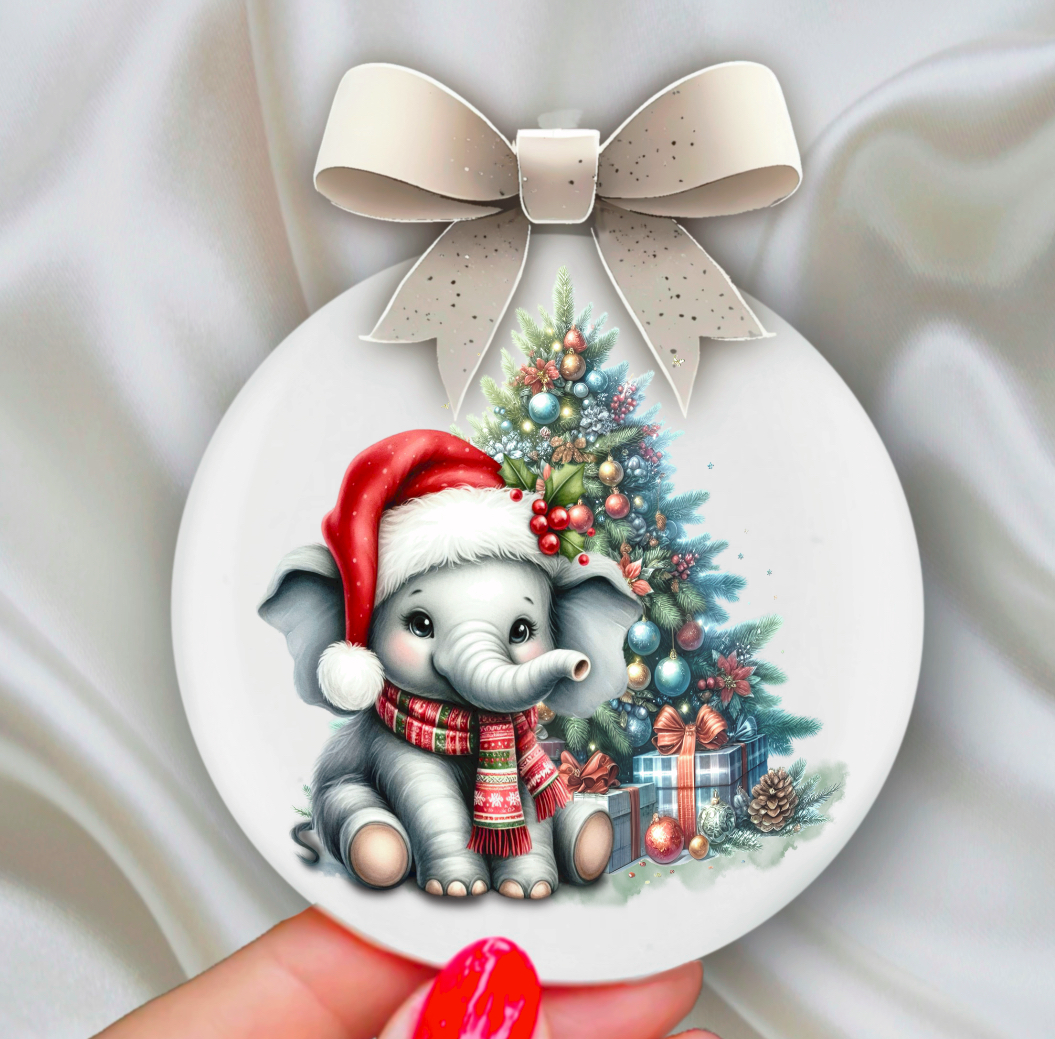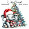 Beautiful Christmas elephant, watercolour with Christmas tree. For sublimation or print. PNG with transparent background.