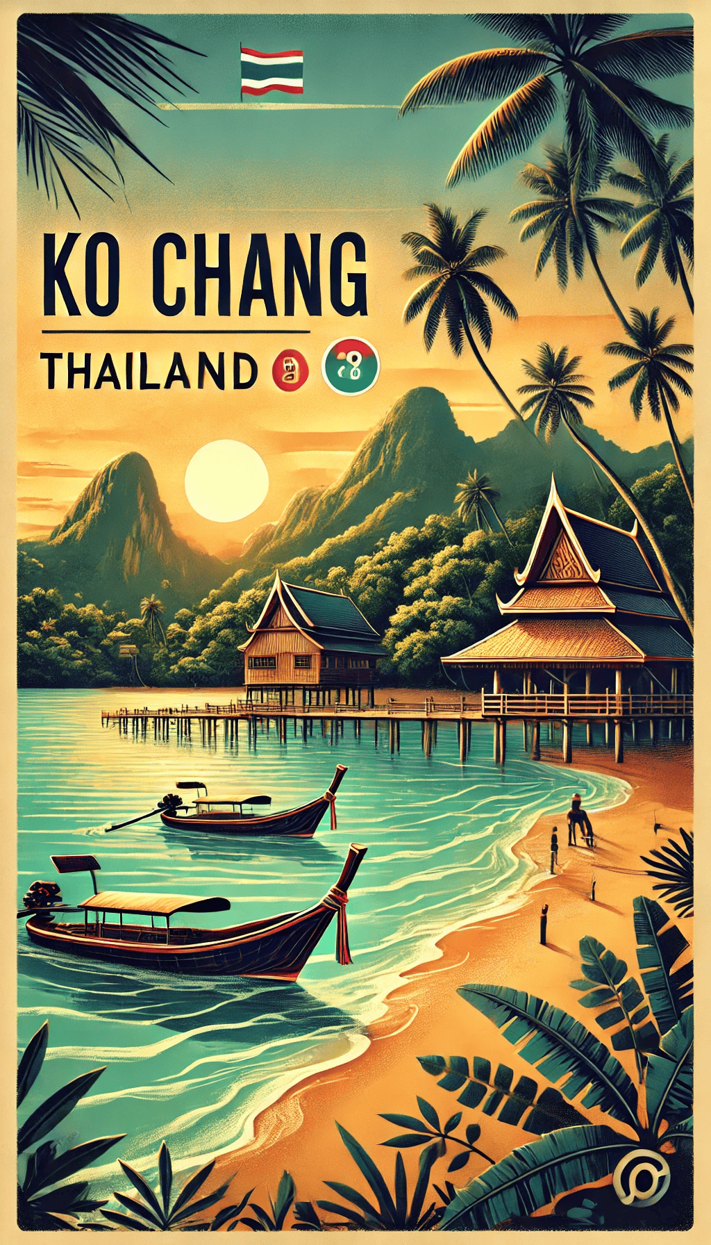 - Bold, retro-style typography spelling βKo Chang, Thailand,β giving it a classic travel poster feel.