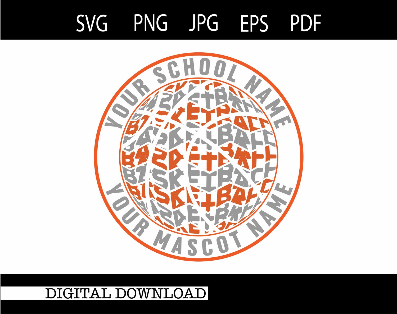 Basketball Digital Image | Free School Name and Mascot Name Customization | SVG PNG JPG EPs PDf #23551
