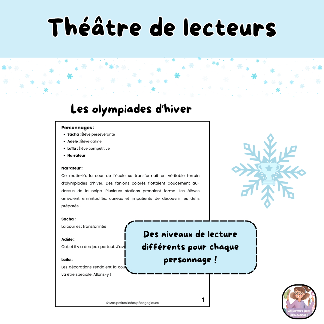 Le document peut être utilisé avec des élèves de niveaux scolaires variés selon leur habileté en lecture et en fonction de l’intention pédagogique recherchée. Ce matériel peut donc être utilisé dans divers contextes (classe, orthopédagogie). Vous trouverez une histoire sous le thème de l’hiver comprenant trois personnages ainsi qu’un narrateur.